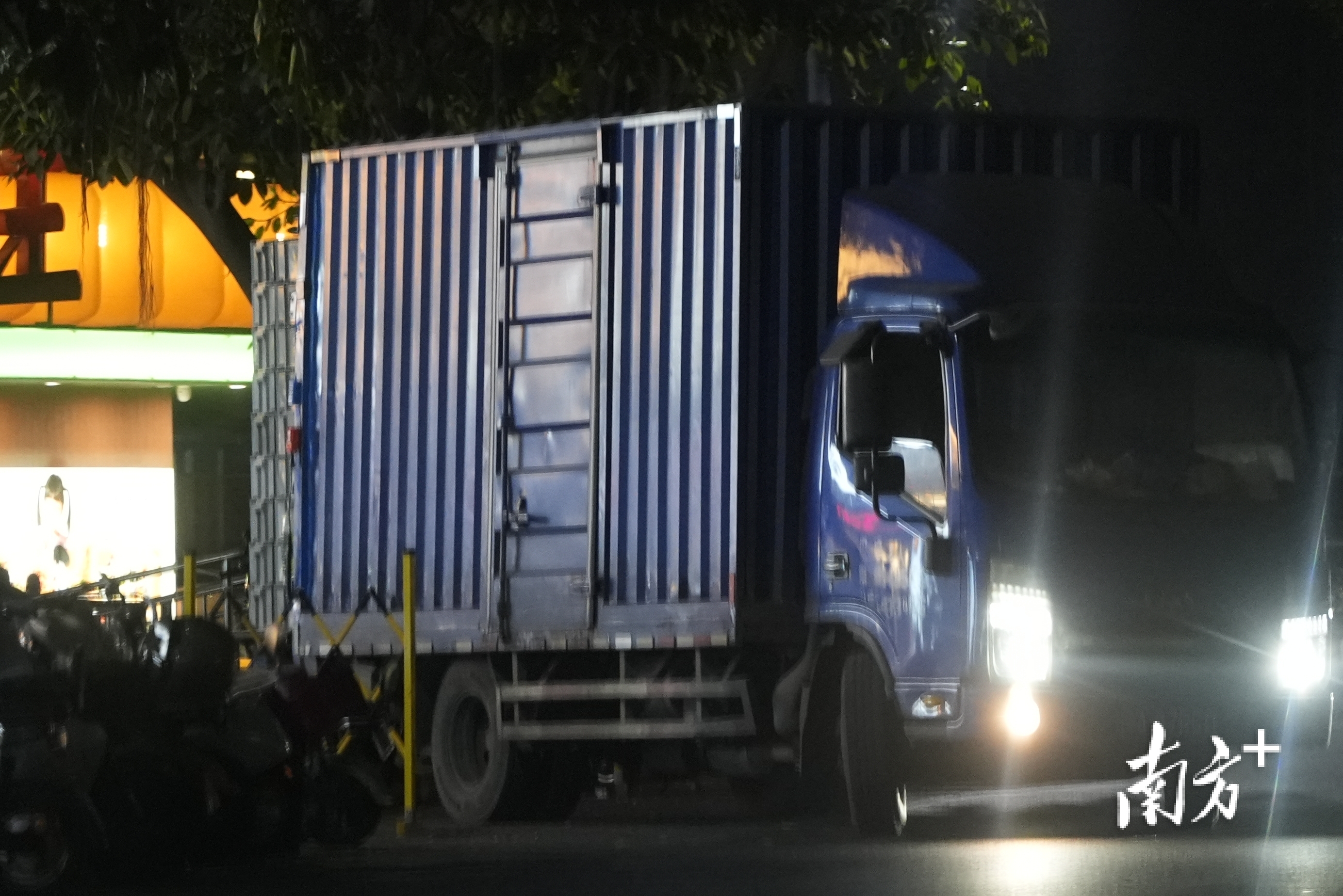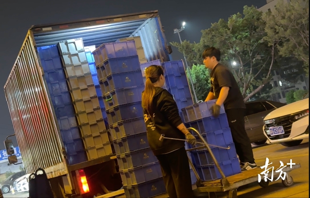 餐具企业在夜间进行餐具的回收及配送工作。