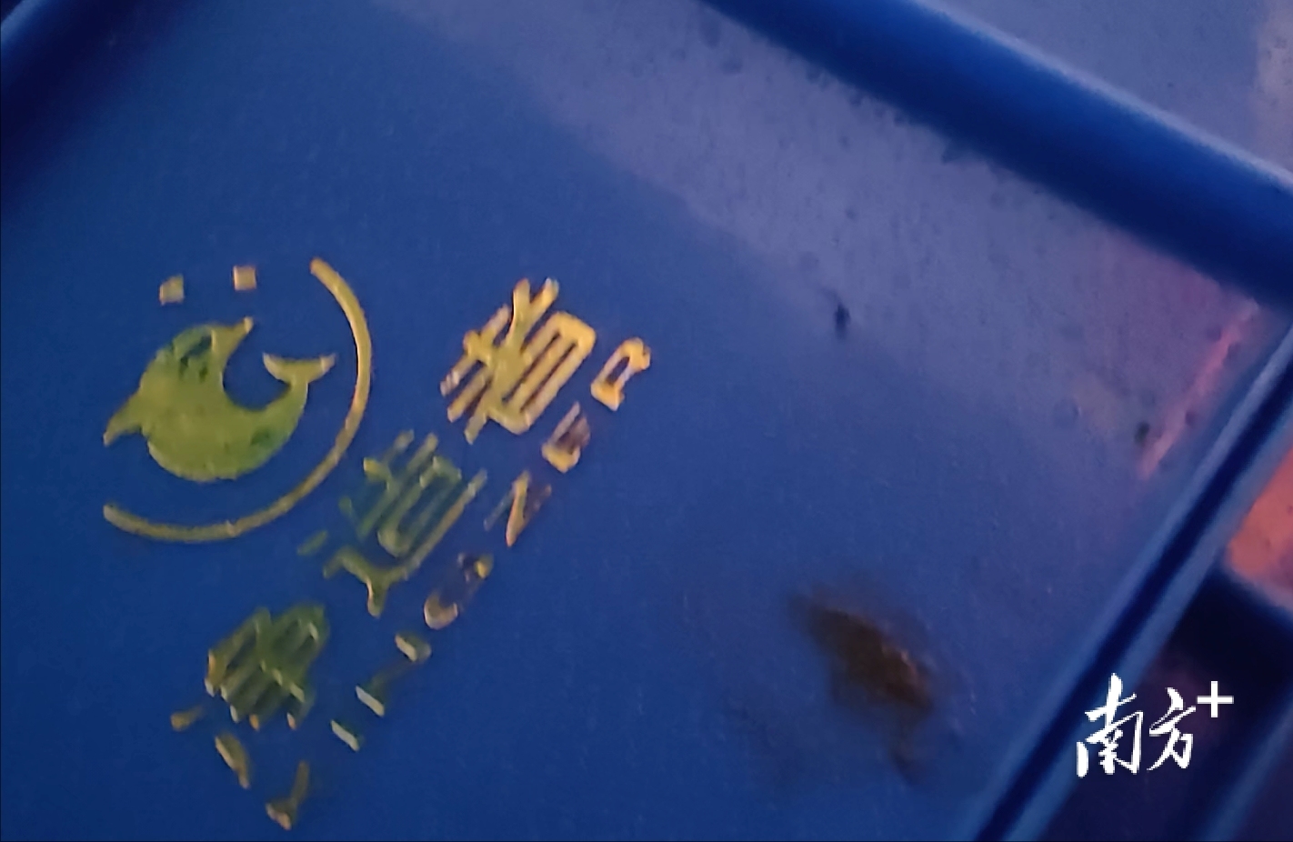 涉事企业的餐具配送盆上有污渍。