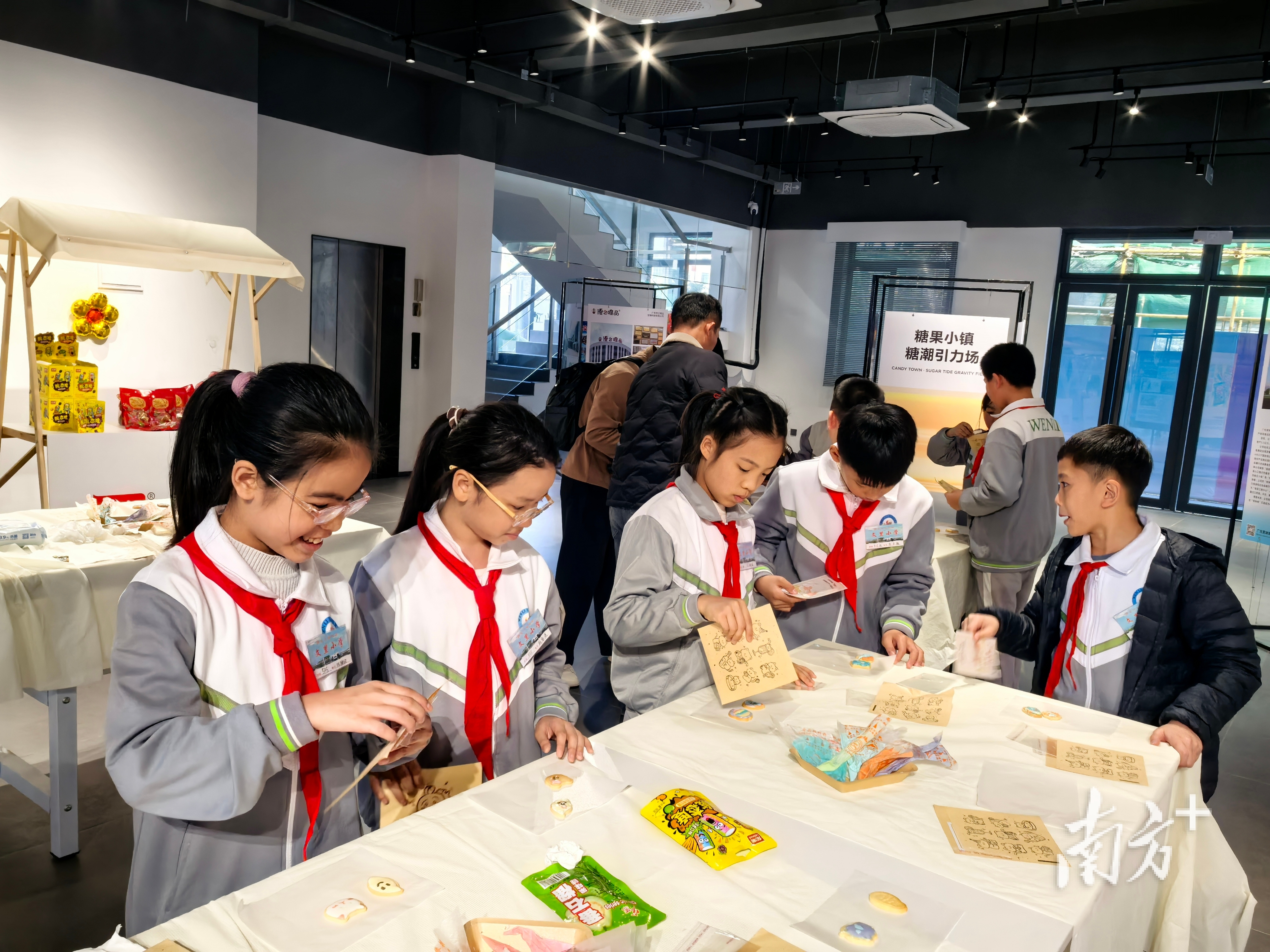 活动首站来到位于潮州造纸厂原址的“糖果小镇·糖潮引力场”。漫步在这座工业遗存的街区内,大家详细了解该项目“工业遗存+当代艺术+商业体验”的更新模式。在这座集产业展示、特色消费、艺术展览于一体的“城市会客厅”内,学生们还以DIY糖果等趣味方式加深对产业的理解。