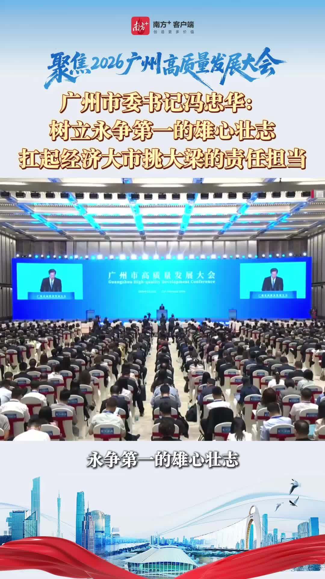 广州市委书记冯忠华在大会上发表讲话,全文九次提及“第一”,从交通枢纽、产业实力到创新资源,全方位诠释了广州“敢为人先、永争第一”的城市基因与奋斗志向。