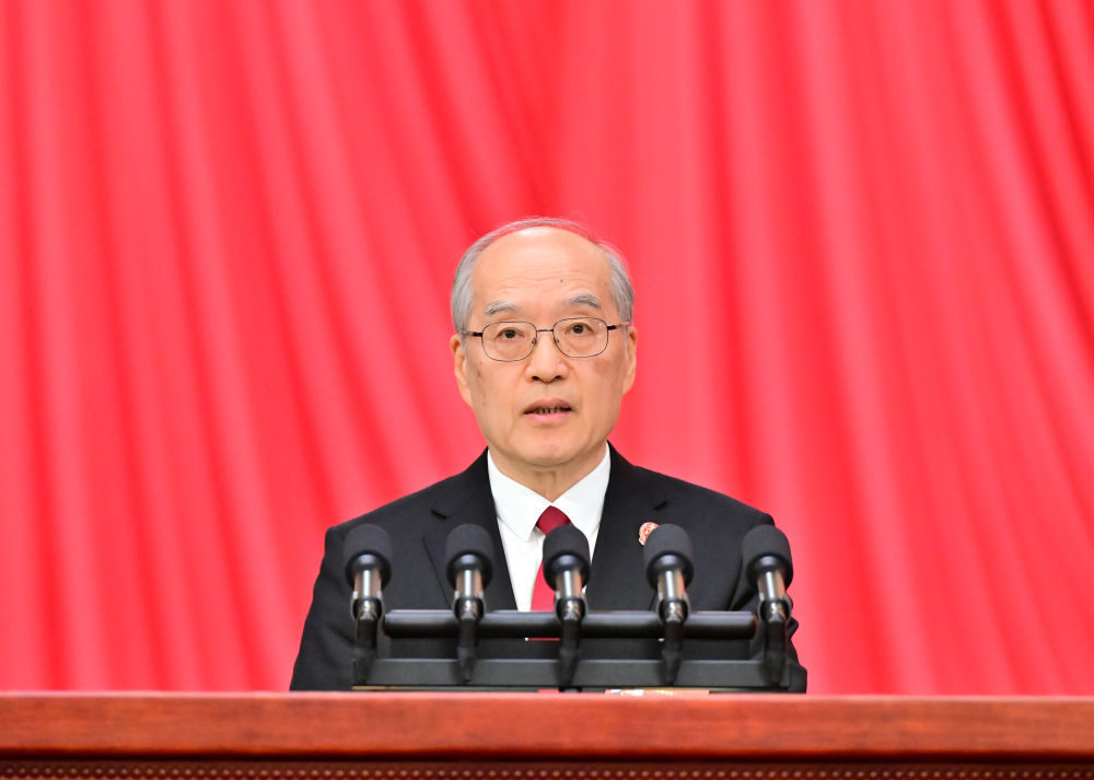 3月9日,十四届全国人大四次会议在北京人民大会堂举行第二次全体会议。最高人民法院院长张军作最高人民法院工作报告。新华社记者 丁海涛 摄