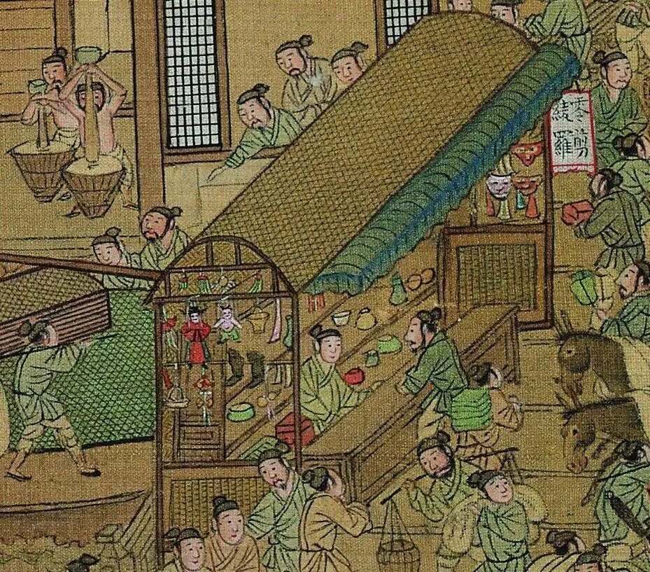 ▲[明]仇英《清明上河图》局部,正是市民经济的发展推动了婚姻的世俗化。图源:网络