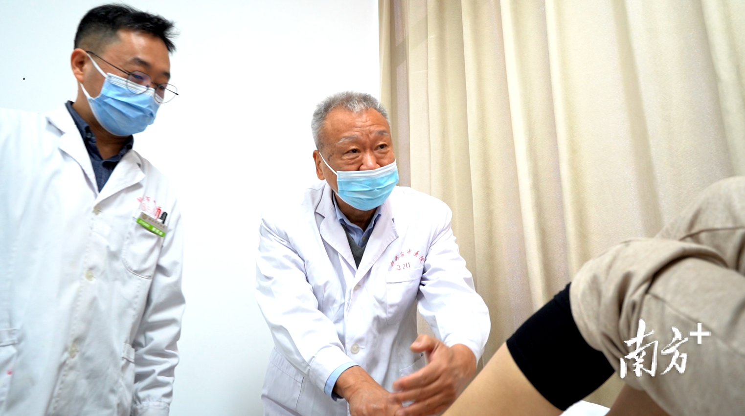 诊室里,全国名老中医专家、广东省名中医樊粤光正在为患者专科查体,查看影像资料,不时与身旁医生交流治疗方案。另一间诊室里,广东省名中医刘旭生也正忙着接诊患者,一边翻看检查报告,一边为患者把脉问诊。