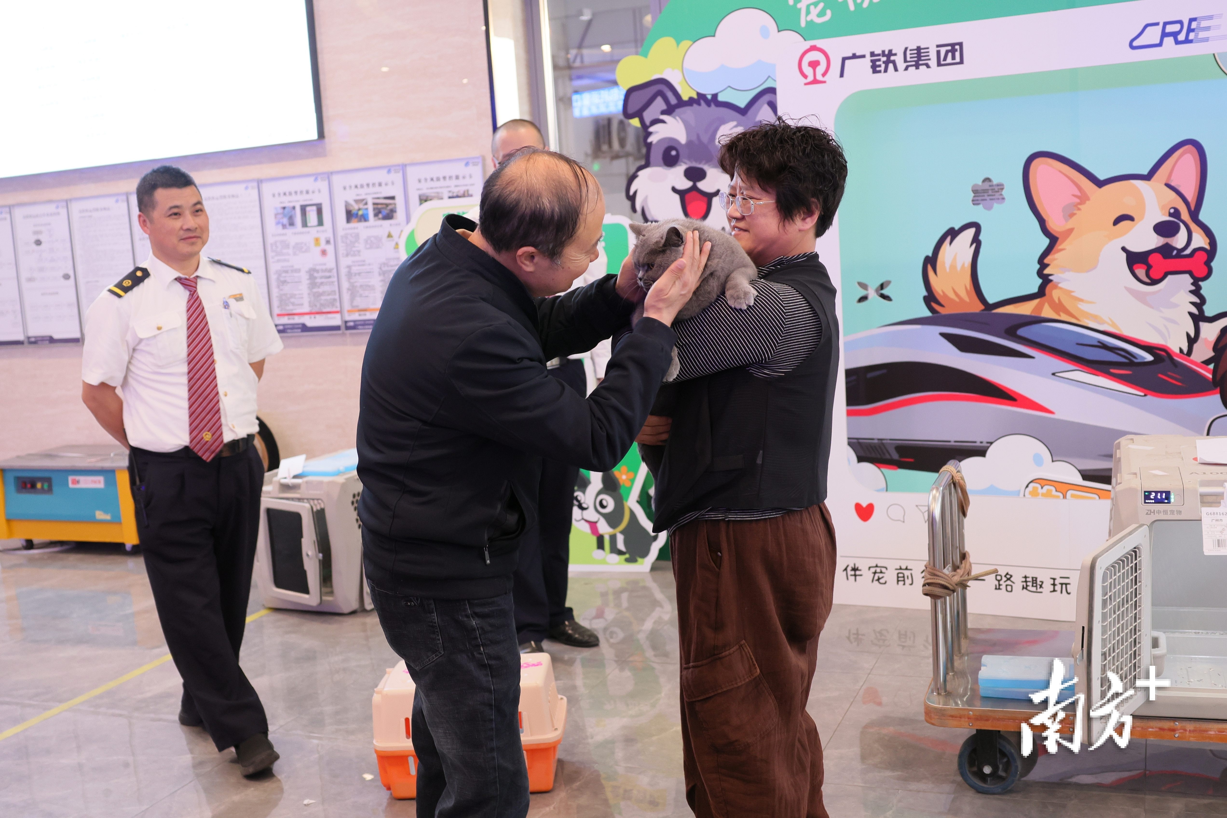 这一服务的推出,让不少养宠家庭告别了“出行与爱宠二选一”的困境。从长沙来广州看望女儿的刘女士与喻先生,便是首批受益者之一。“以前出门要么把猫放宠物店寄养,要么就得麻烦亲戚来家里投喂,回来总发现它食欲不振,有轻微焦虑。”刘女士说,这次在网上看到高铁宠物托运服务后,立刻预约了G6111次列车的托运服务,“托运箱里放了水和猫砂,接到猫咪时的状态和上车时差不多,预约和接送都特别方便,太省心了。”