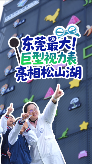 近日,在松山湖第二小学操场上,出现了一道独特的风景线:不时有学生抬起一只手蒙住眼睛,另一只手指向教学楼墙壁某处,口中念念有词:“大象、星星、草莓……”他们正在使用的,并非传统视力表上方向各异的“E”字,而是一幅高14米、宽10米,带有趣味图案的巨型视力检测墙。这也是目前东莞规模最大的视力自测设施。