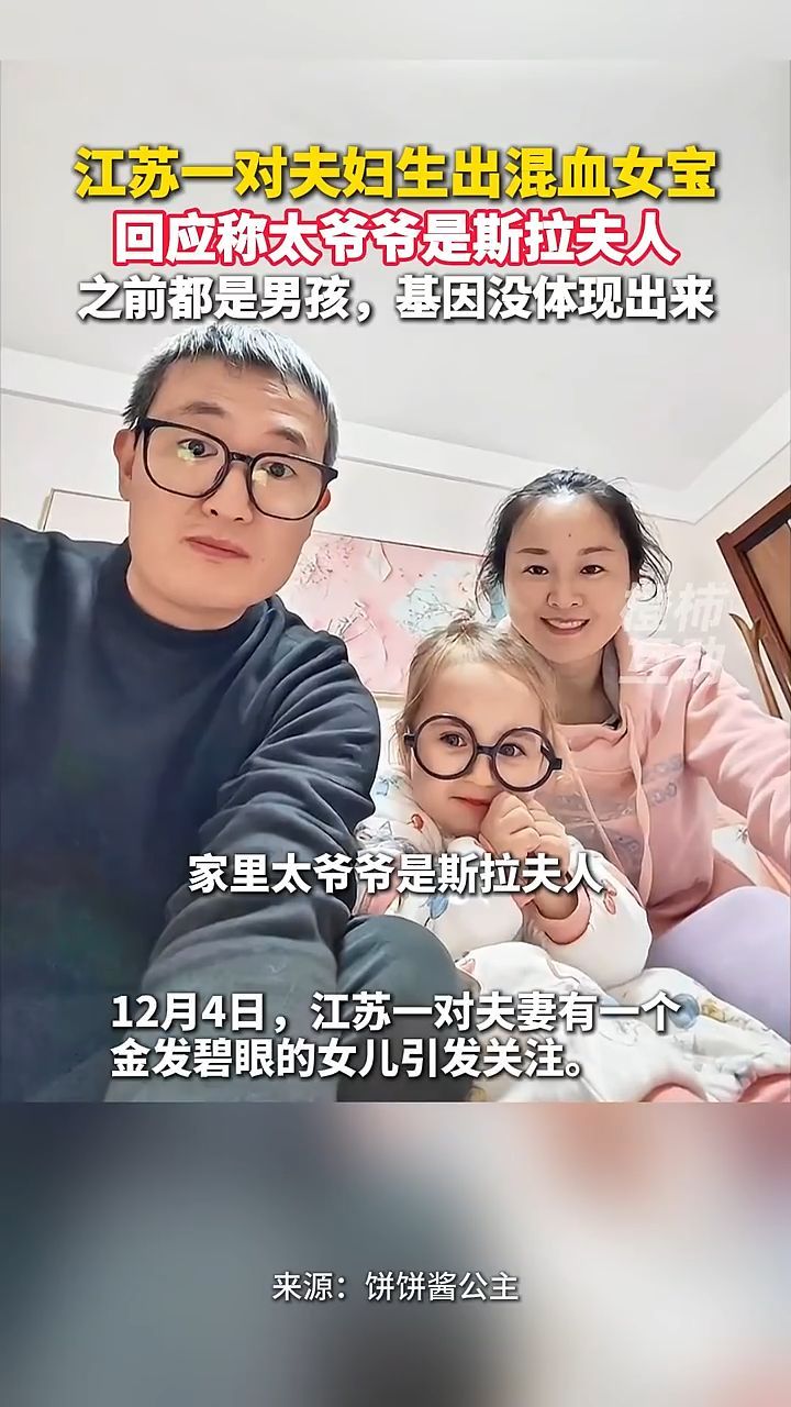 近日,江苏一对中国夫妻生下金发碧眼的混血女娃,引发广泛关注。家人起初以为“抱错孩子”,后通过亲子鉴定确认为亲生。