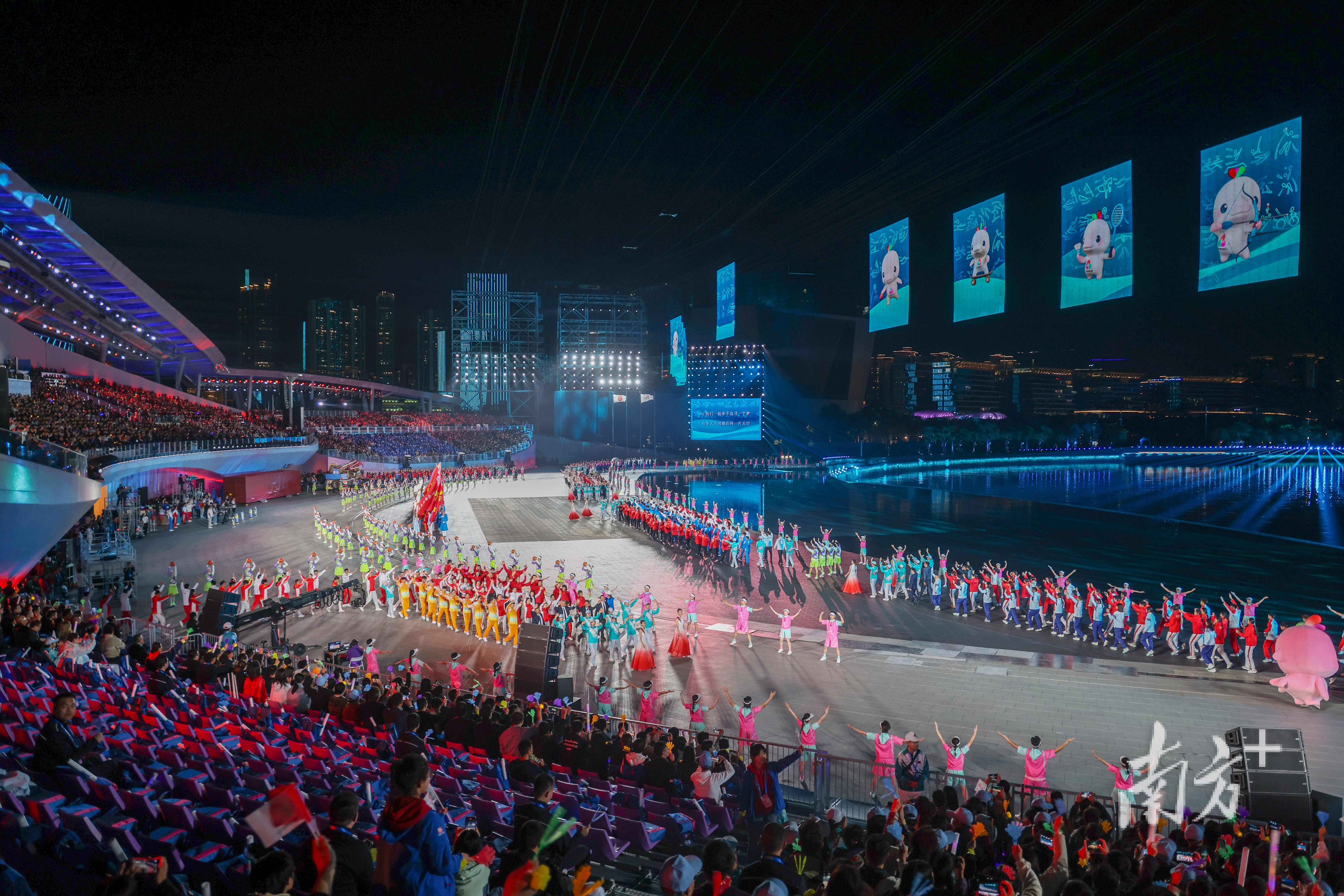 十五运会开闭幕式直播在全国累计近2亿人次观看,充分展现岭南风韵和科技实力。图为十五运会闭幕式在深圳前海欢乐剧场举行。南方+记者 朱洪波 姚志豪 摄