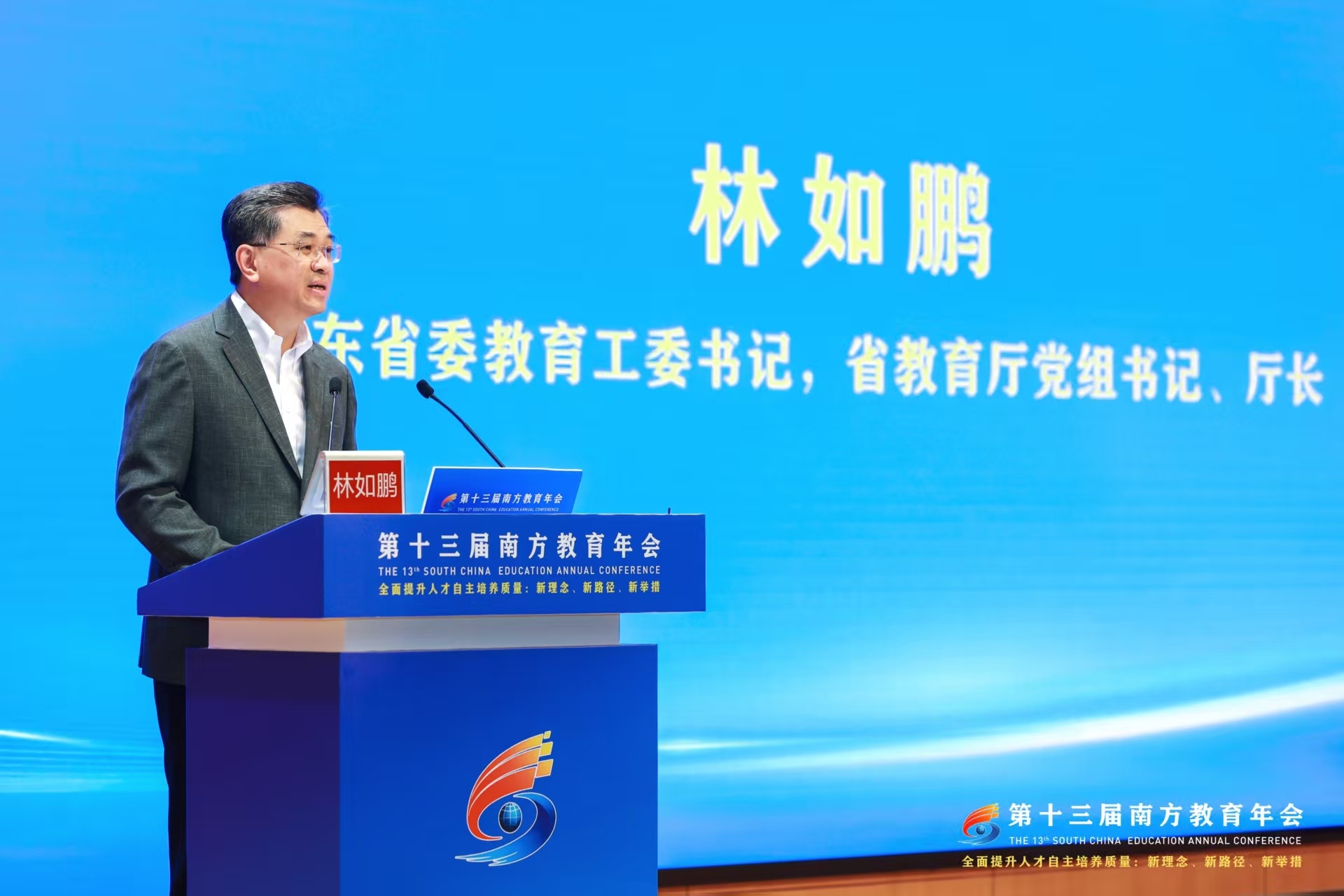现场,省委教育工委书记,省教育厅党组书记、厅长林如鹏作主旨演讲时表示,广东要系统谋划全面提高人才自主培养质量的广东方案,着力加强党的全面领导、夯实基础教育根基、建强职业教育体系、提升高等教育质量、推动贯通培养改革、建强高素质师资队伍、强化多元合作赋能,超常规培养拔尖创新人才和相关领域实践人才,并建设全省教育大数据中心,持续推进数字技术赋能人才自主培养。