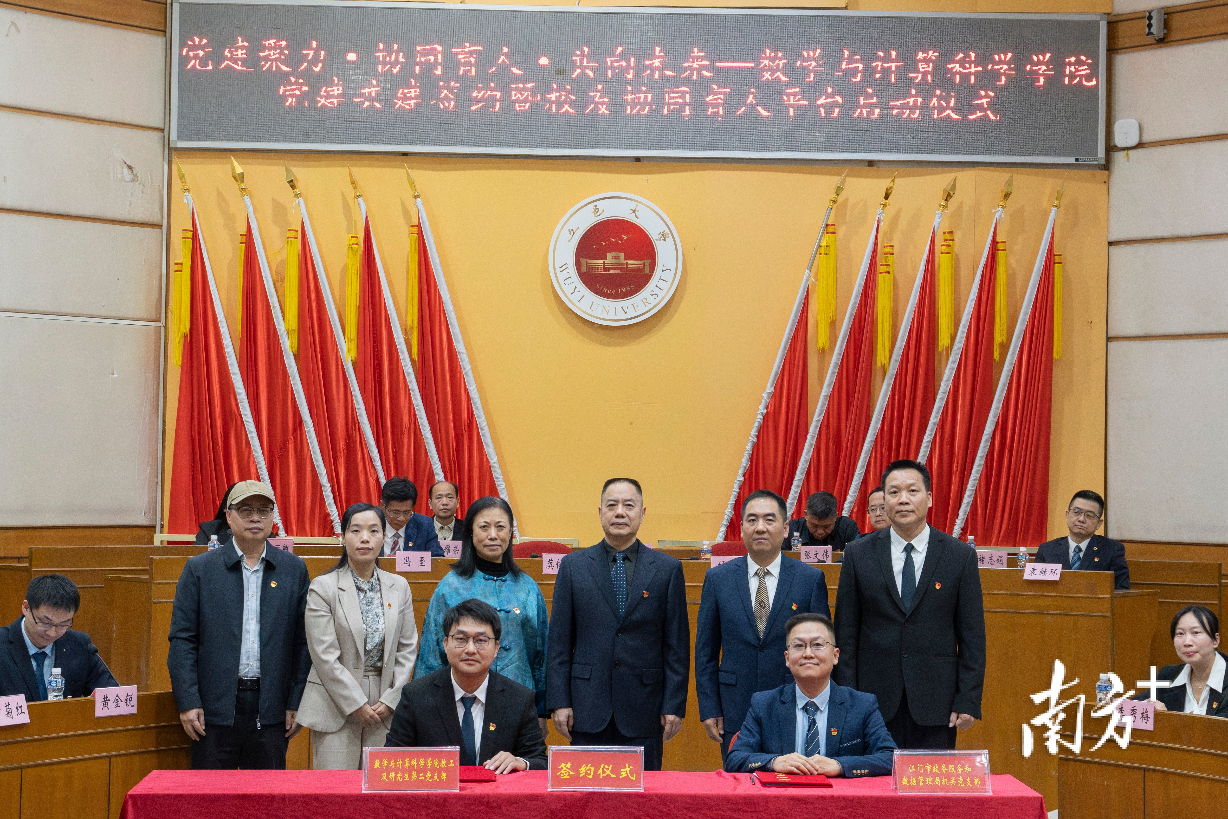 日前,五邑大学数学与计算科学学院“党建聚力·协同育人·共向未来”党建共建签约暨校友协同育人平台正式启动,推动党建、政校行企与校友三方力量深度融合,构建“党建引领、资源共享、优势互补、协同育人”的长效机制。