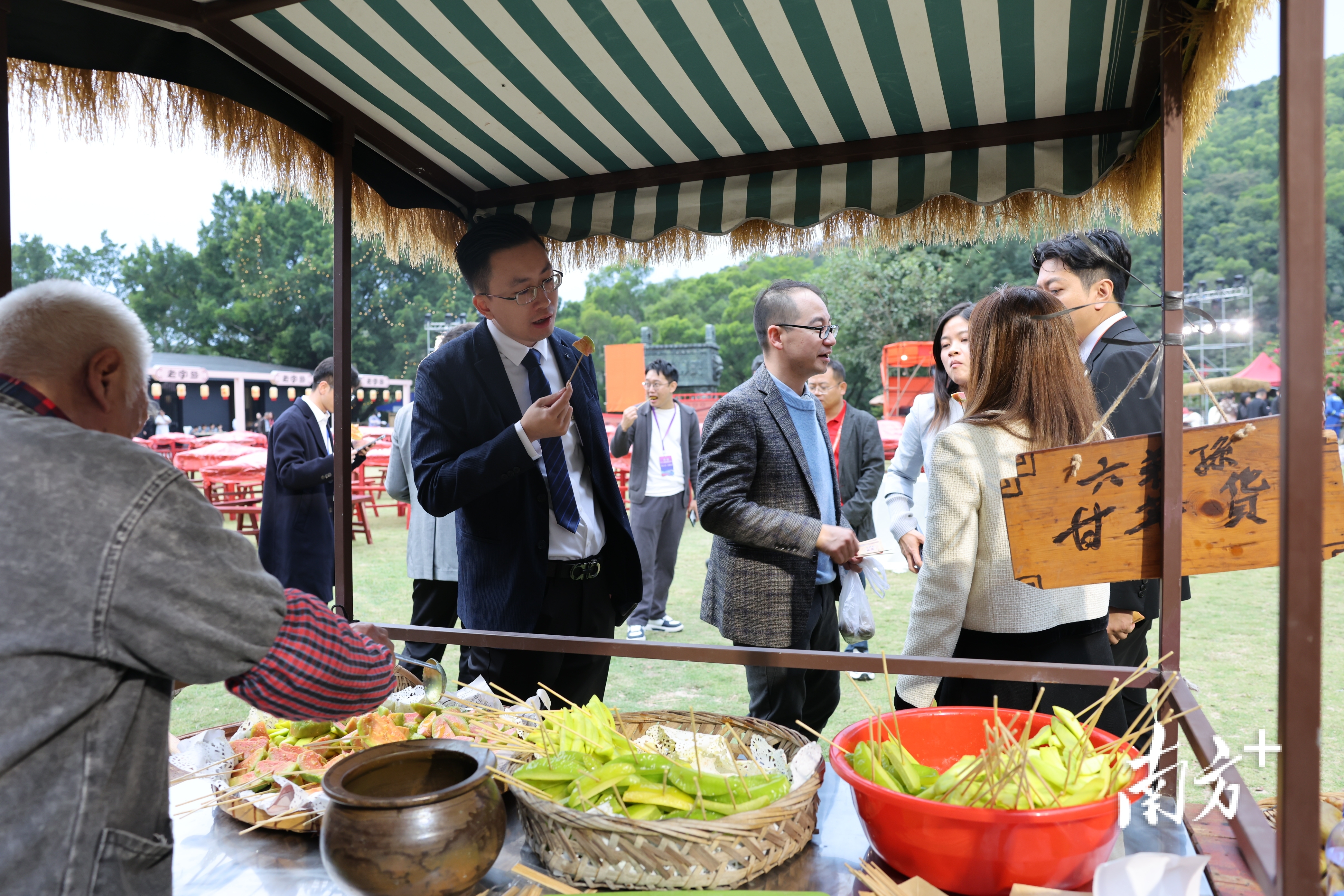不远处的甘草水果摊前,几串青翠的腌杨桃、乌亮的反沙橄榄静静插在竹签上——没有草莓、猕猴桃和圣女果,也没有缤纷糖浆,只有记忆里那几种简单却刻骨铭心的味道。“以前就这几样,阿嬷买一串,分我们兄弟吃。”澳洲广东工商联合会会长阿波罗·林拿起一串,笑着对同伴说。