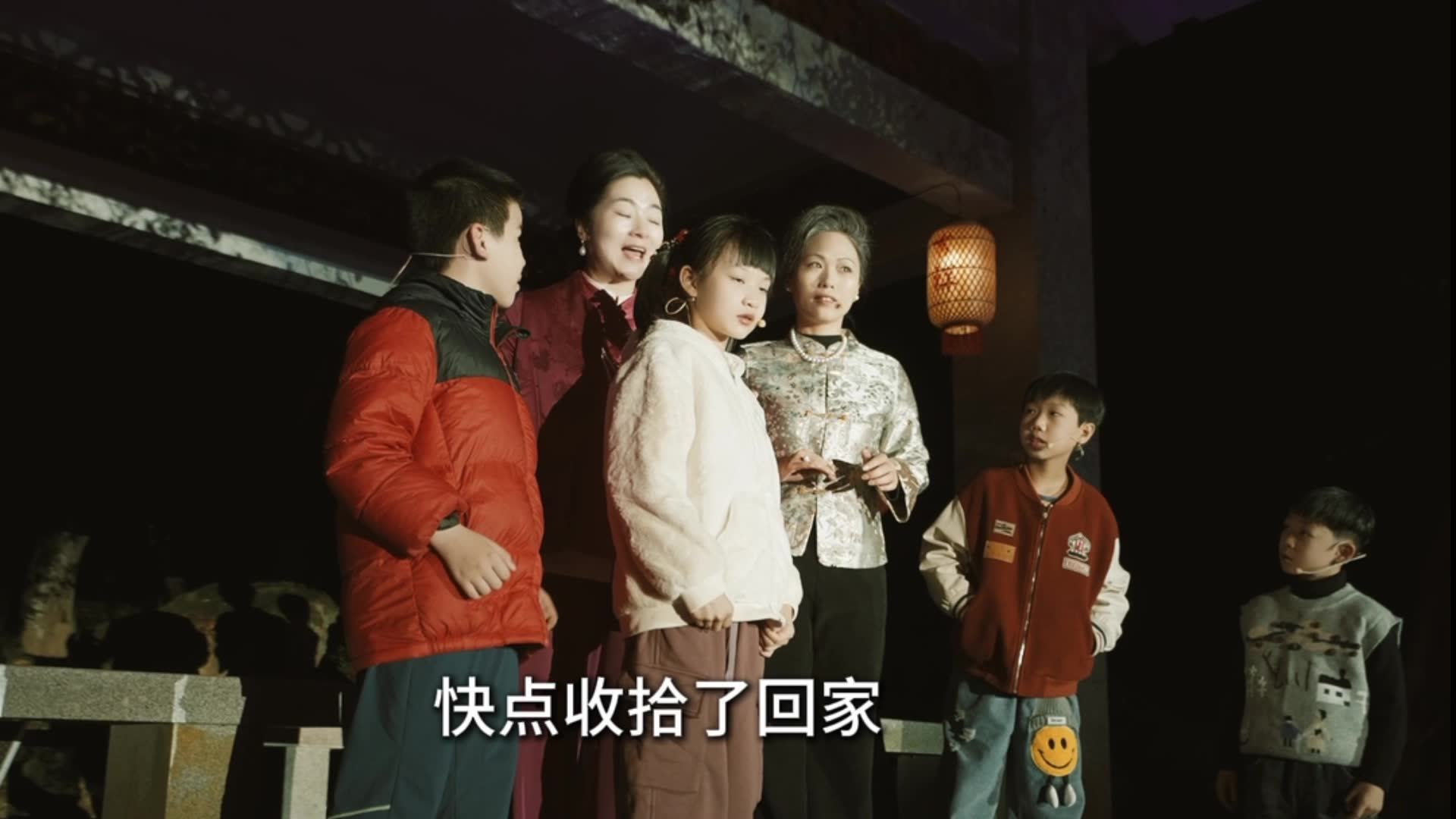 “我们的飞机已经到达潮汕机场,欢迎您来到潮人故里”,现场机场播报声响起,剧情悄然转向“家国兴”:潮州牌坊街迎来一批又一批游客,学生们神采奕奕、书声琅琅,化身小小讲解员,指引游客读懂潮州。嬷嬷带着儿孙走进潮州“大街”,精致的手拉壶、栩栩如生的木雕让孩子们惊叹不已。