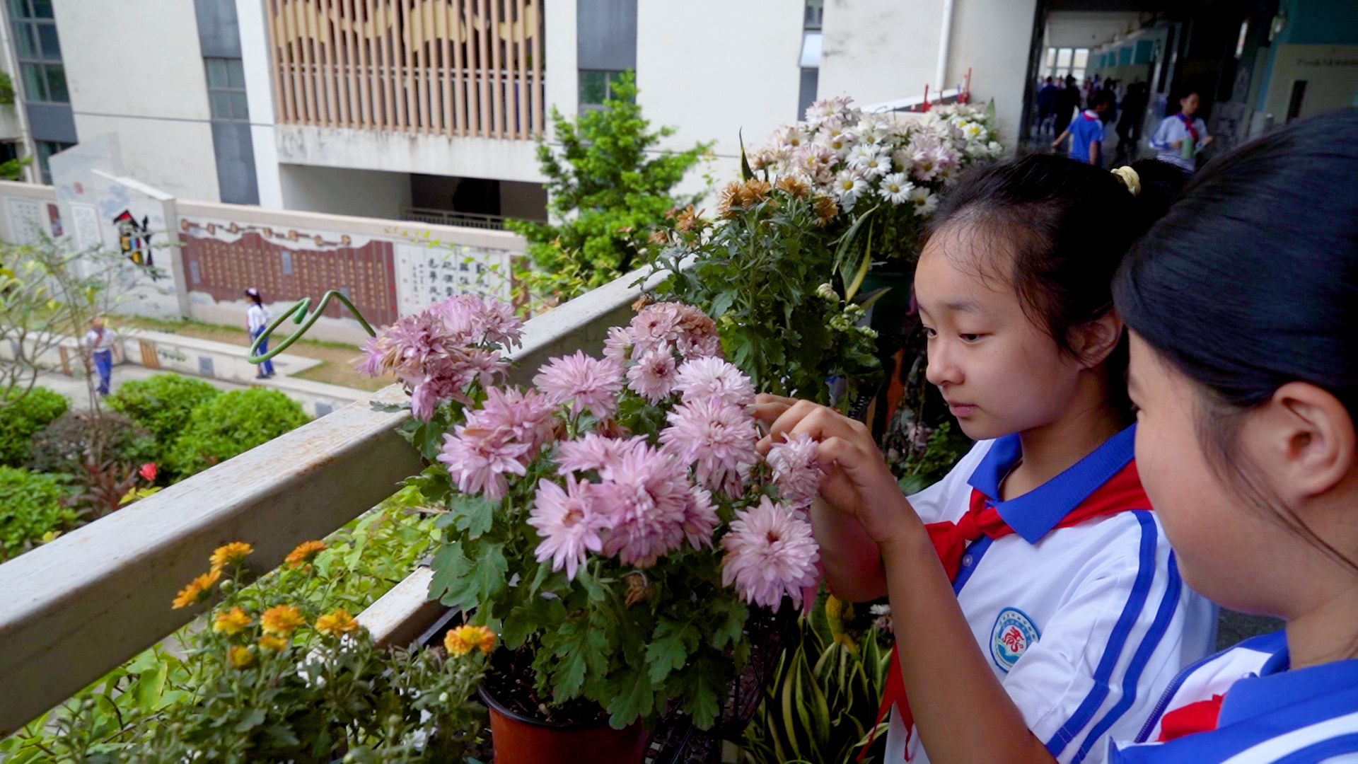 “快看,这里冒出花苞了!”下课铃声刚落,深圳市坪山实验学校六年级13班教室外的种植廊就围起一圈小脑袋。