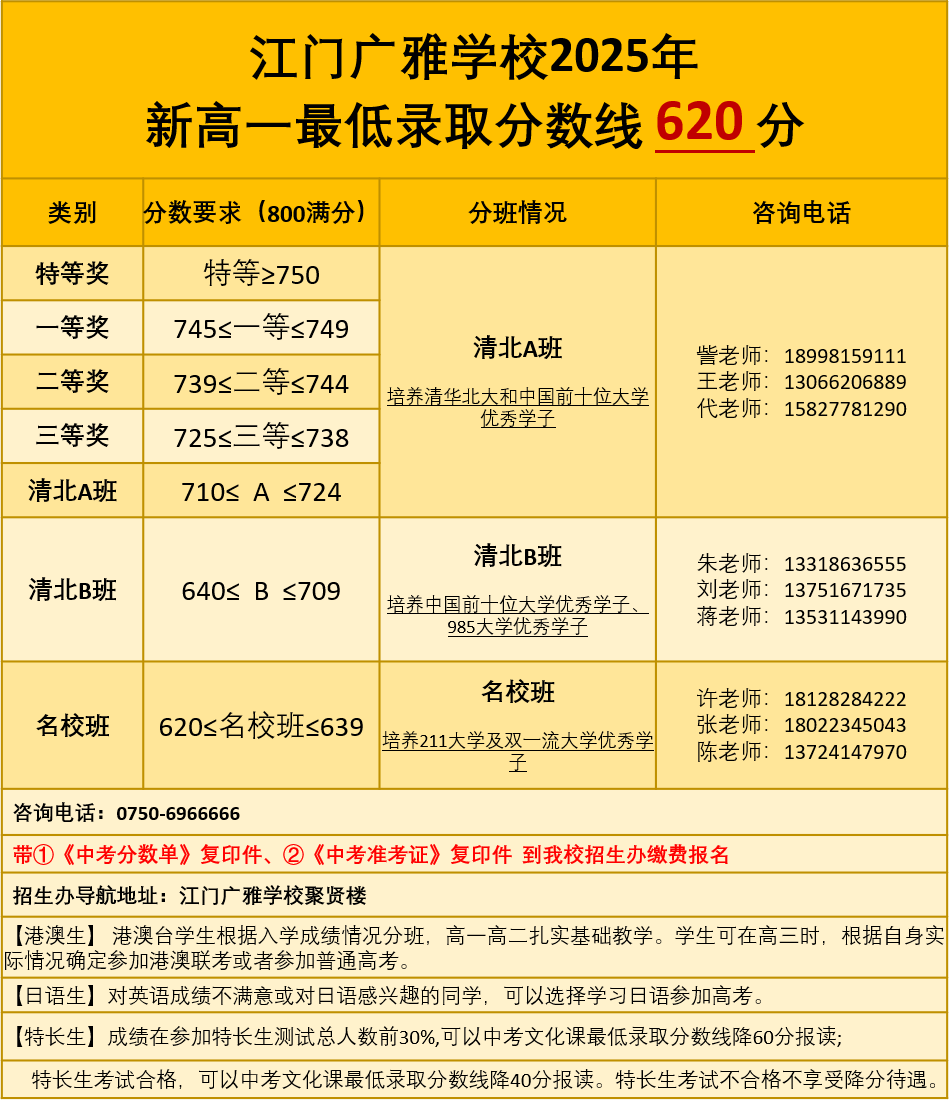 南方+从江门市广雅学校处了解到,该校2025年新高一录取分数线为620分。