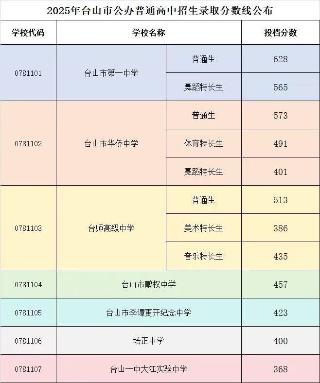 (“市统筹投档线”为面向市直、蓬江和江海区招生,根据考生填报志愿和学校招生计划,按平行志愿投档分数线)