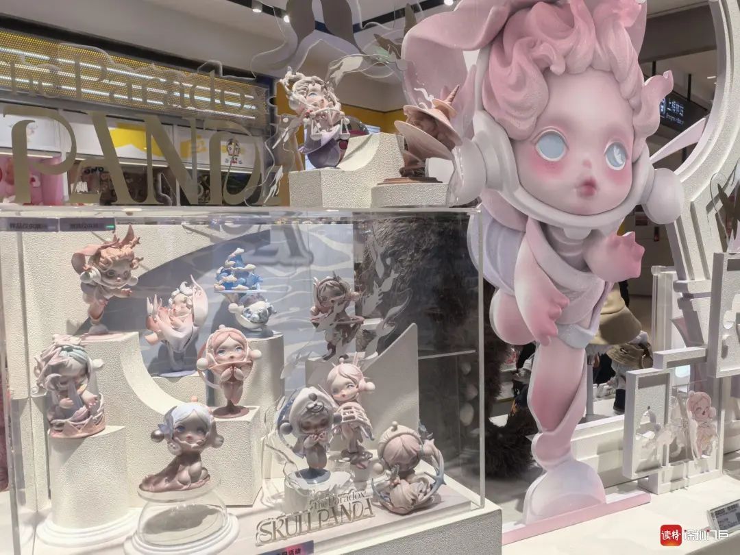 泡泡玛特线下门店摆放着Skullpanda进退之门系列盲盒。