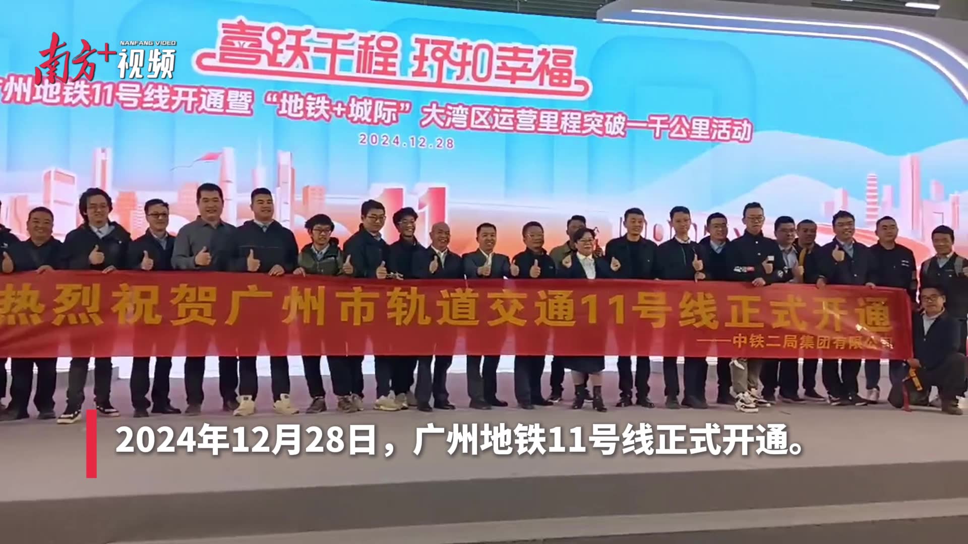 12月28日,广州首条环线——十一号线正式开通初期运营,当天广清城际铁路北延线(清城站至飞霞站)也同步开通,标志着广州地铁运营的大湾区“地铁+城际”里程突破1000公里,其中地铁705.1公里、城际铁路338.3公里。