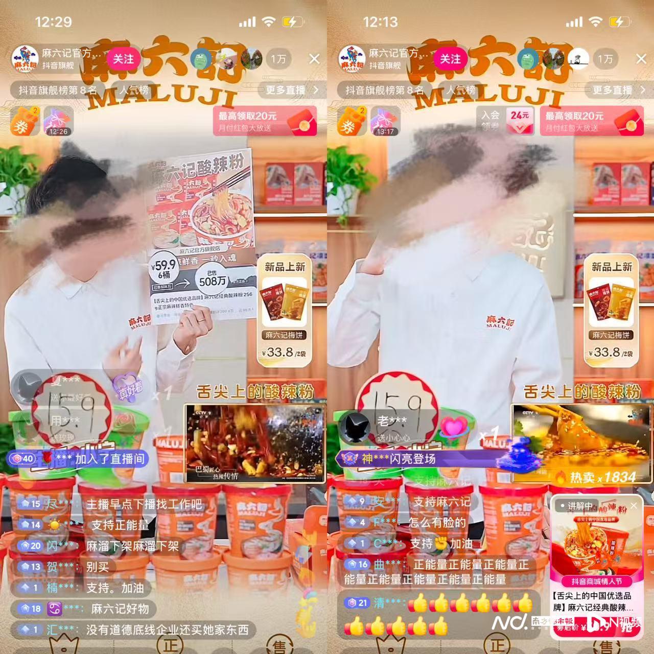 2月8日中午,南都湾财社记者注意到,麻六记官方旗舰店直播间在直播带货,不少网友刷屏“下架”“还敢播”“没有道德底线”,亦有部分网友表示支持企业。截至发稿前,该账号依然在正常直播,蝉妈妈显示,自2月8日早上7点至下午1点,麻六记官方直播间观看人次达113.9万,人气峰值1.4万,销售额达25万-50万元。