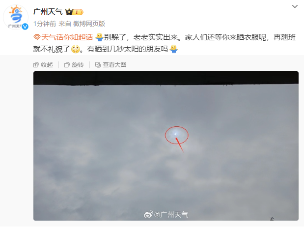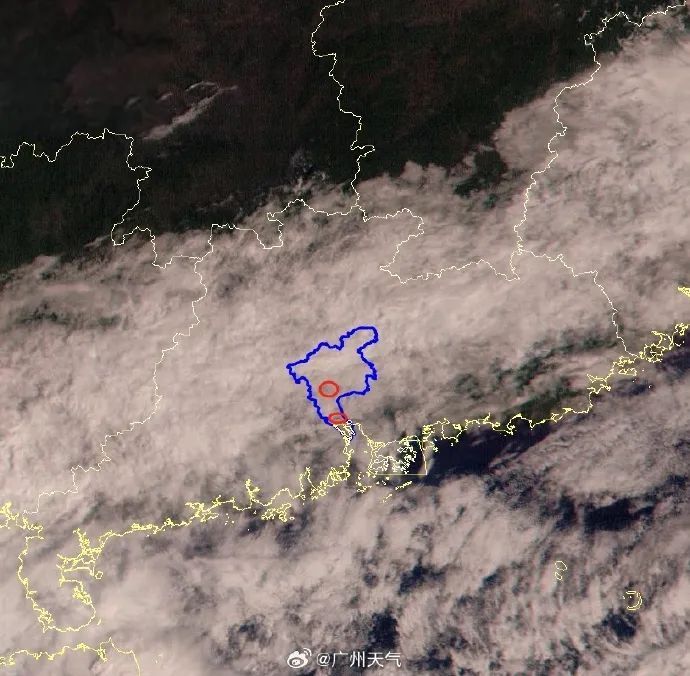 据@广州天气介绍,从云图可以看到,一大片厚实的云基本盖住了广东,但在一些云层稀薄的地方也可以看到微微的阳光。