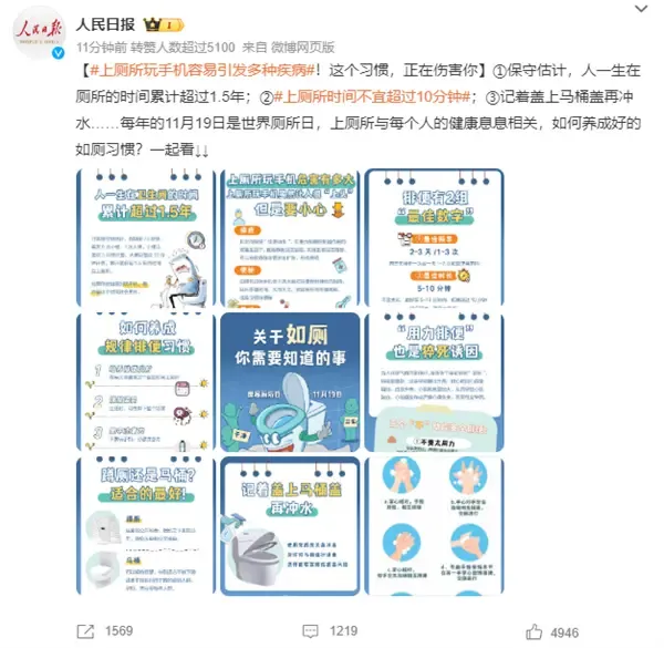 快科技11月19日消息,今天是“世界厕所日”,#上厕所玩手机容易引发多种疾病#等话题在微博上引起热议。
