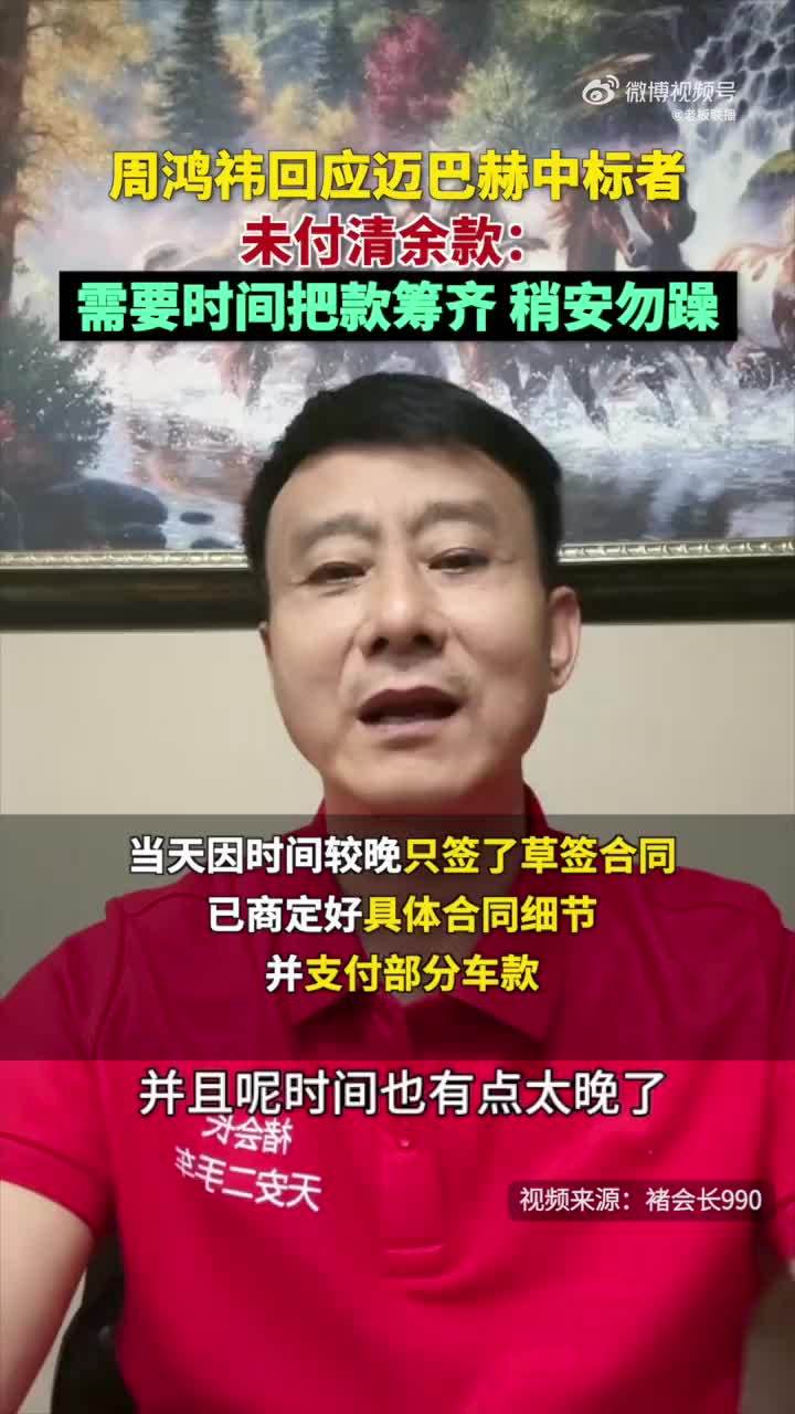 周鸿祎回应迈巴赫中标者未付清余款:褚会长需要时间把款筹齐