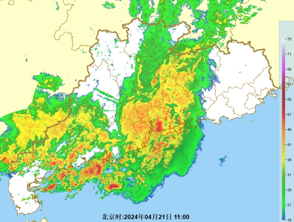 21日,粤北、珠三角大部市县阴天,有暴雨到大暴雨局部特大暴雨;粤西阴天,有大雨到暴雨局部大暴雨,其余市县阴天,有中到大雨局部暴雨。
