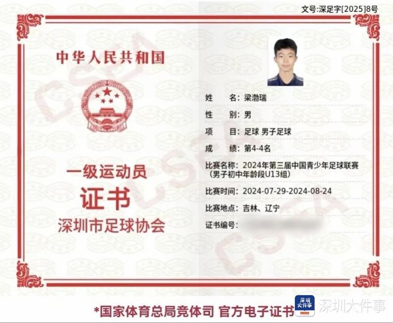 值得一提的是,近日梁渤瑞更是凭借在足球领域的卓越表现,获得了“国家一级运动员”称号,并成功入选国少第三期青训训练营。他获得的所有荣誉不仅是对其足球天赋的肯定,更是对他长期刻苦训练的最好回报。