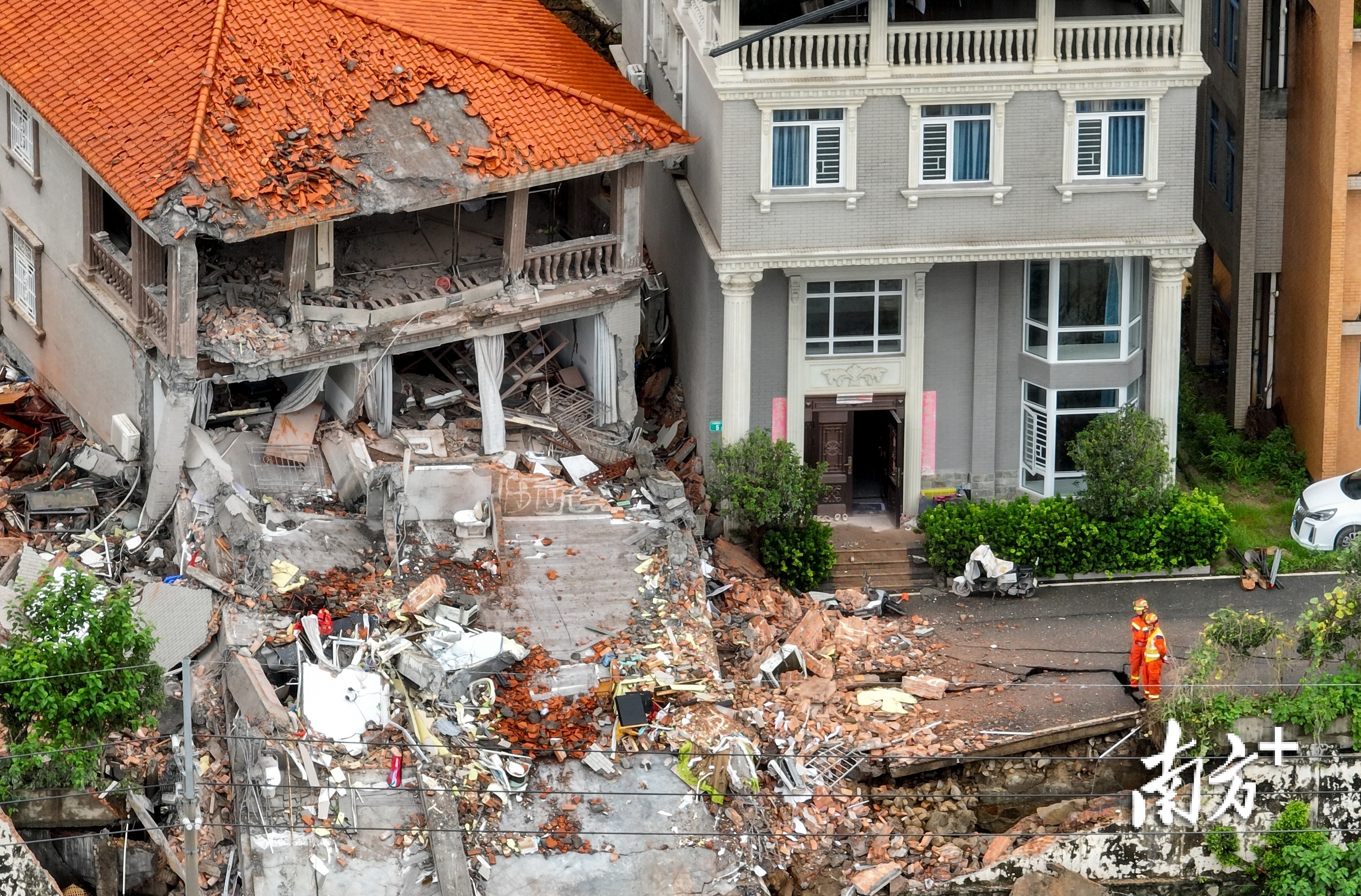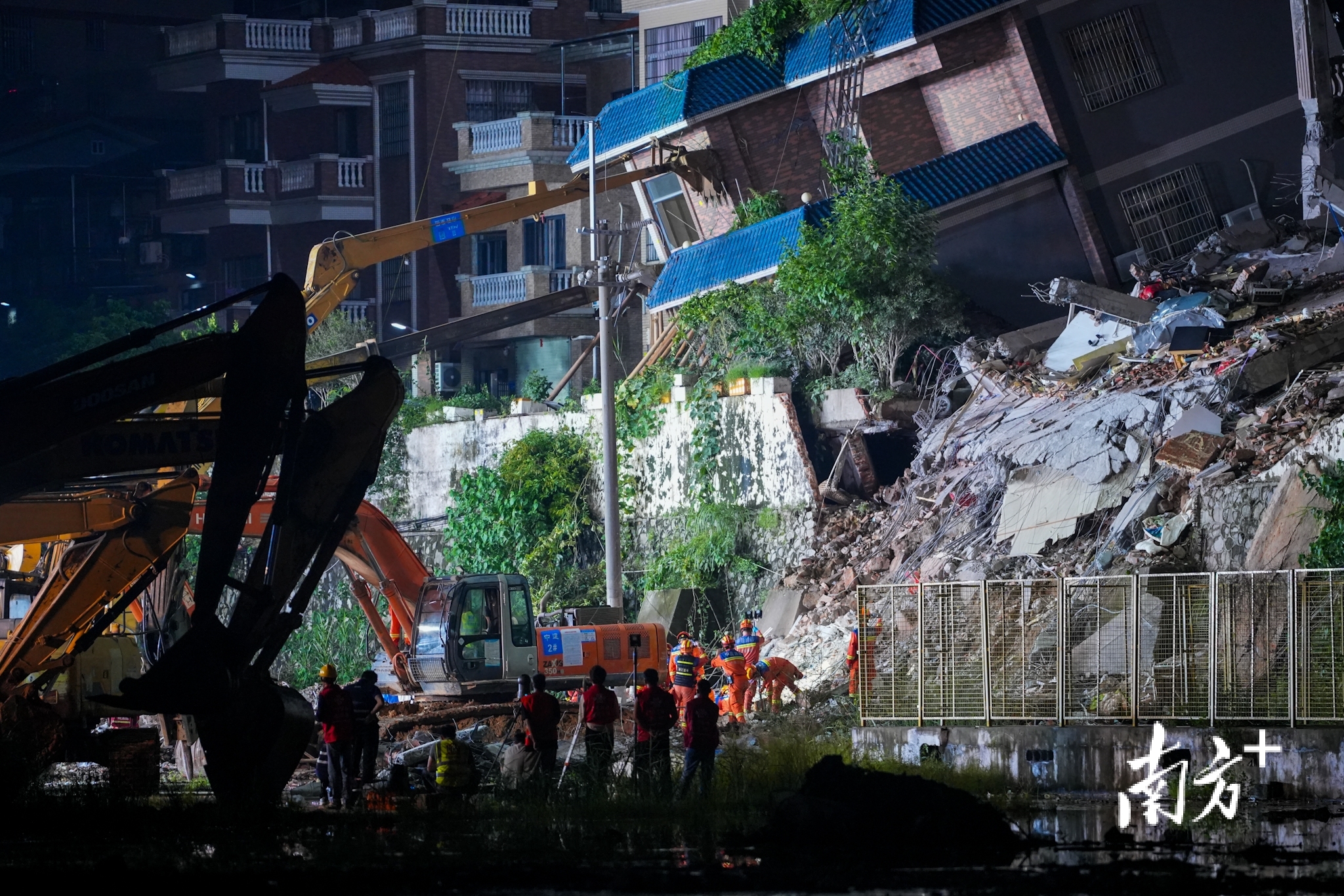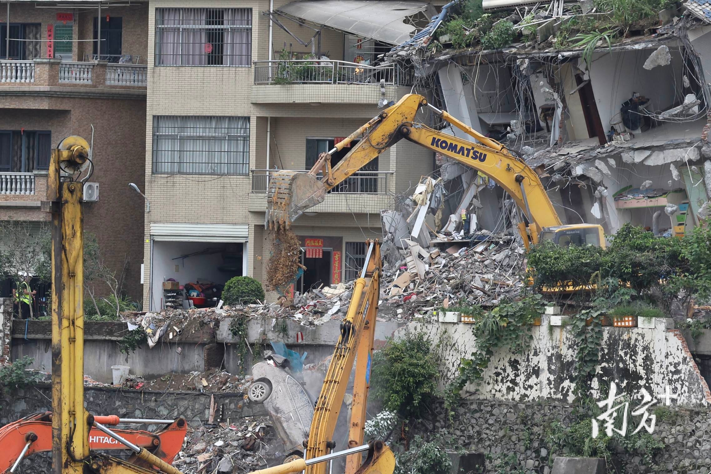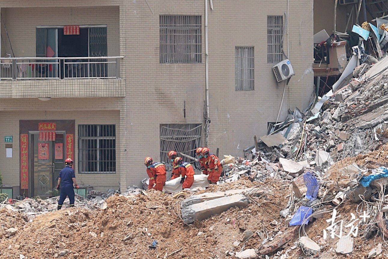 一位周边居住的大姐告诉南方+记者,她家住在山体垮塌的房屋对面,昨天早上起床后就在阳台看到对面两栋房屋歪斜,“希望里面的人能尽快被救出来”。
