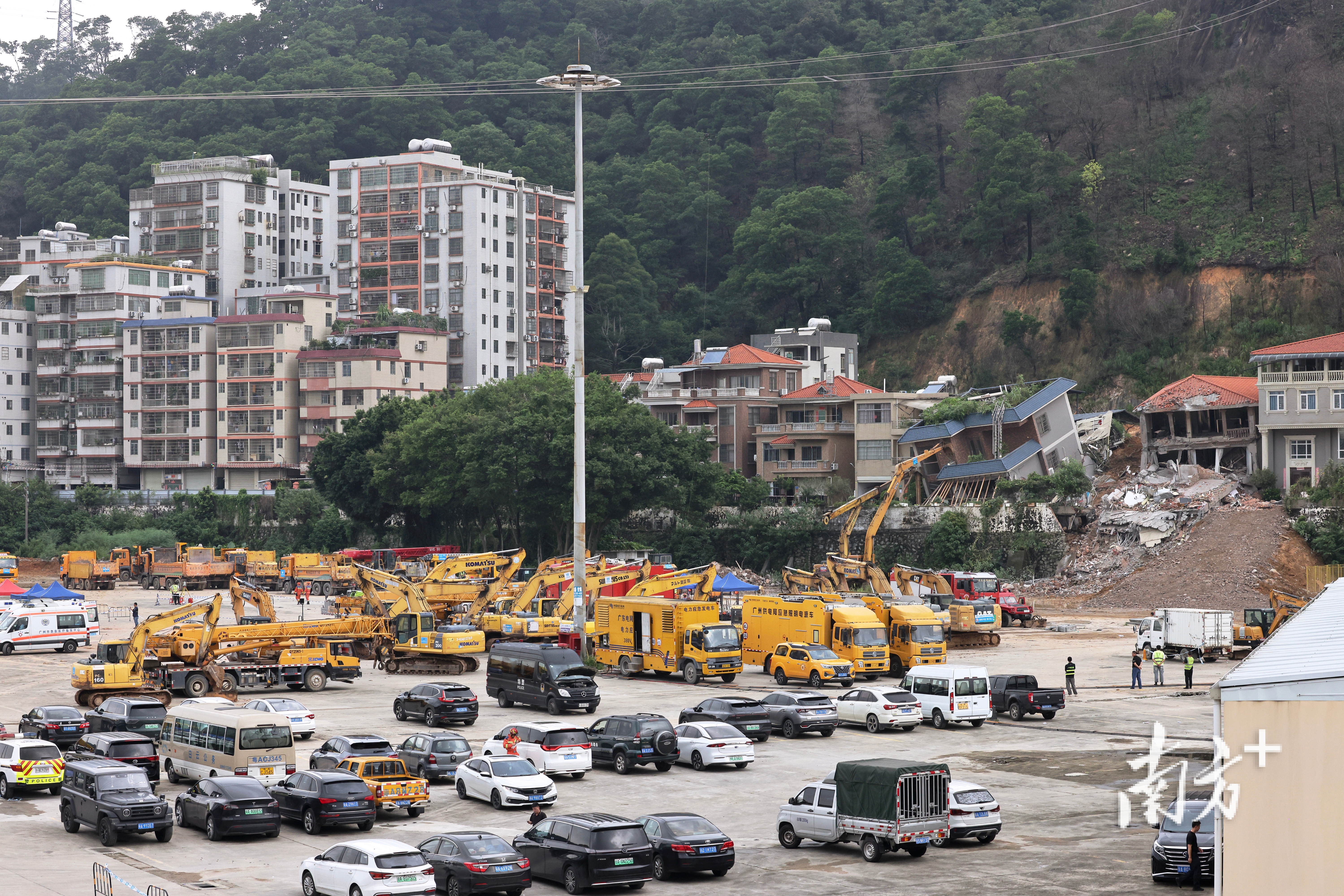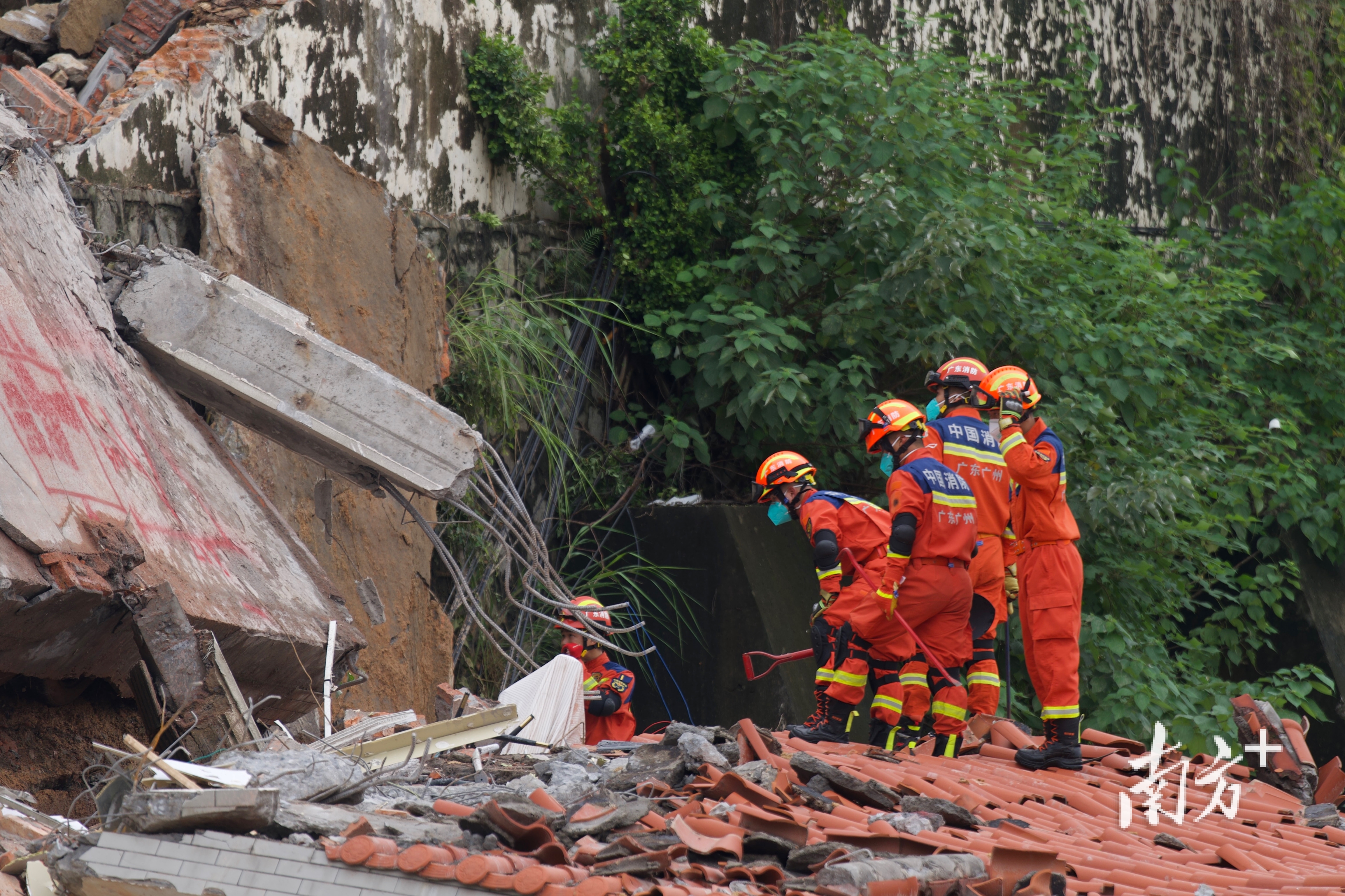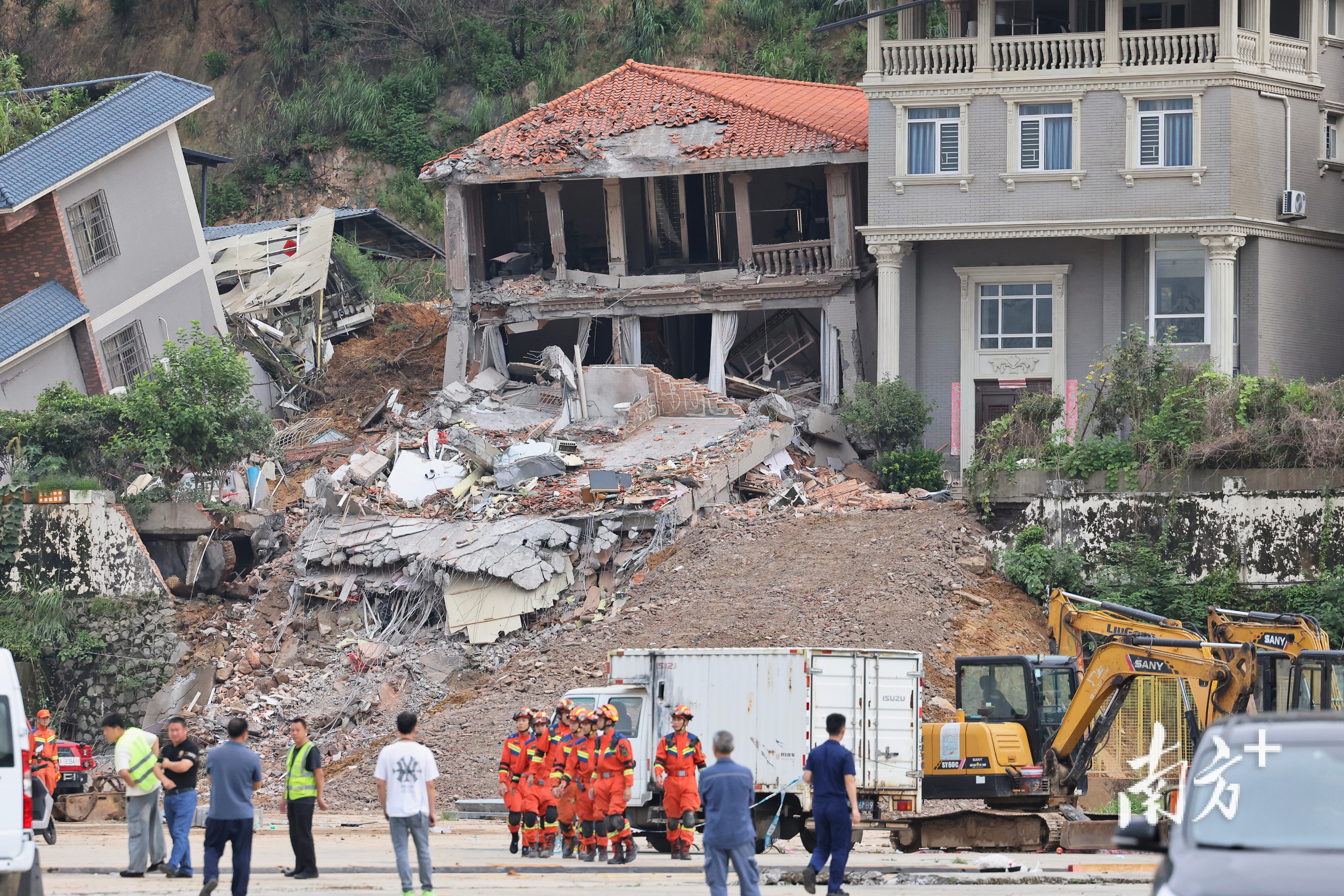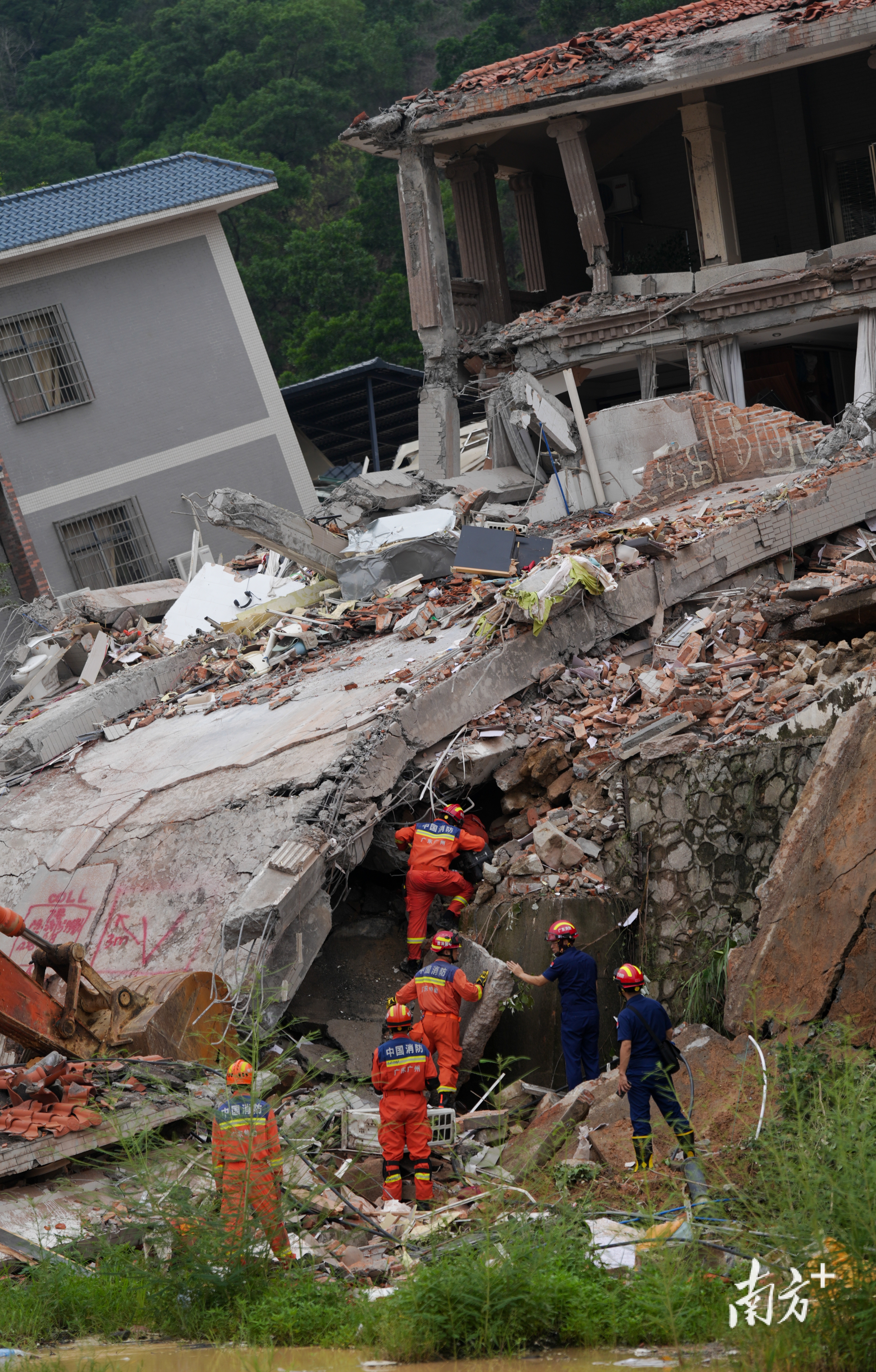 8月7日下午5时许,广州山体垮塌现场被破除房屋的清理工作正在进行。南方+记者在现场看到,此前倾斜的两栋楼房已经不复存在。据悉,破除工作完成后,救援人员将开展深度搜救工作。