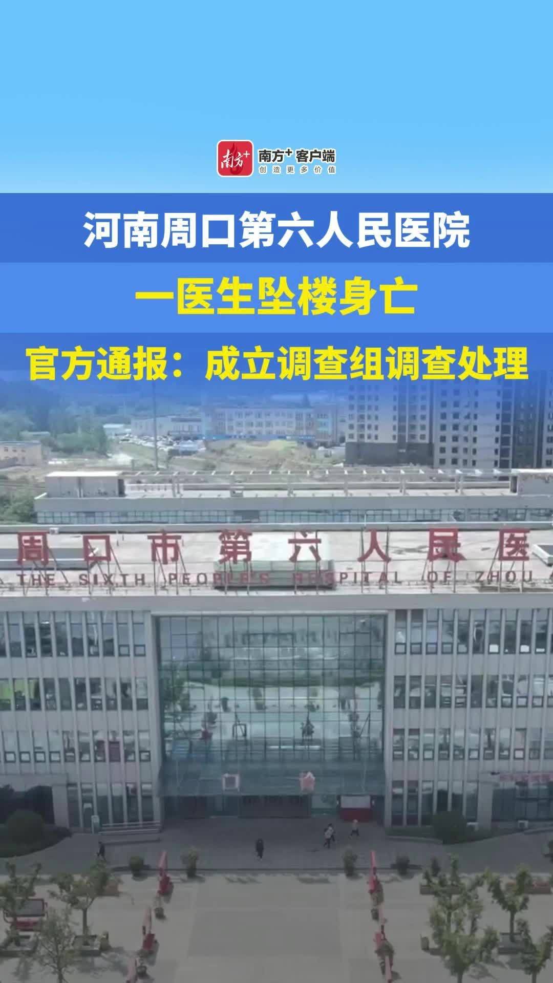河南周口通报第六人民医院一医生坠楼身亡:成立调查组调查处理