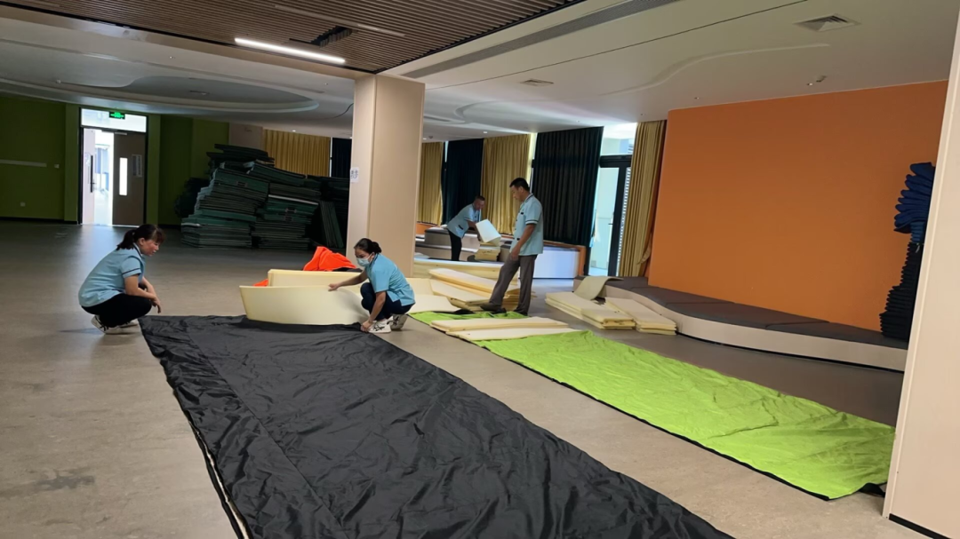守真小学在推进“躺睡”计划时,注重材质选择和空间布局的创新,学校经过多轮论证和试验,最终选定了材质安全环保、舒适耐用、易于清洁擦拭的高密度XPE材质的“爬爬垫”。