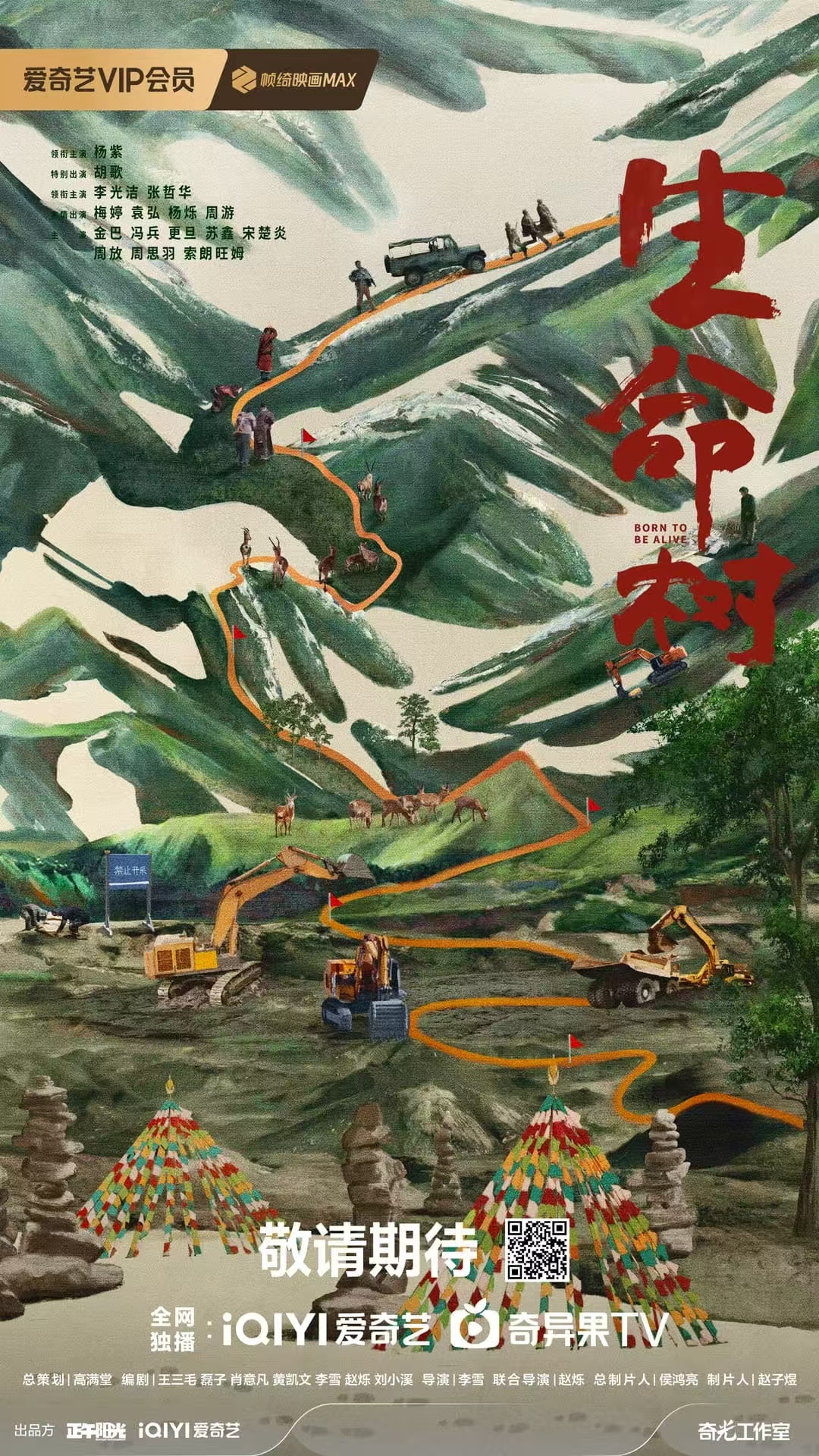 由正午阳光出品,侯鸿亮任总制片人、赵子煜任制片人,高满堂任总策划,王三毛、磊子、肖意凡、黄凯文、李雪、赵烁、刘小溪编剧,李雪执导、赵烁联合执导,杨紫领衔主演,胡歌特别出演的现实主义大剧《生命树》,讲述了女警白菊与矢志守卫无人区的多杰等人组建巡山队,一道出生入死,以生命为代价建立了自然保护区的故事,塑造了一批为复绿工程作出杰出贡献的人物群像。该剧在会上发布最新片花,预计将于2026年播出。