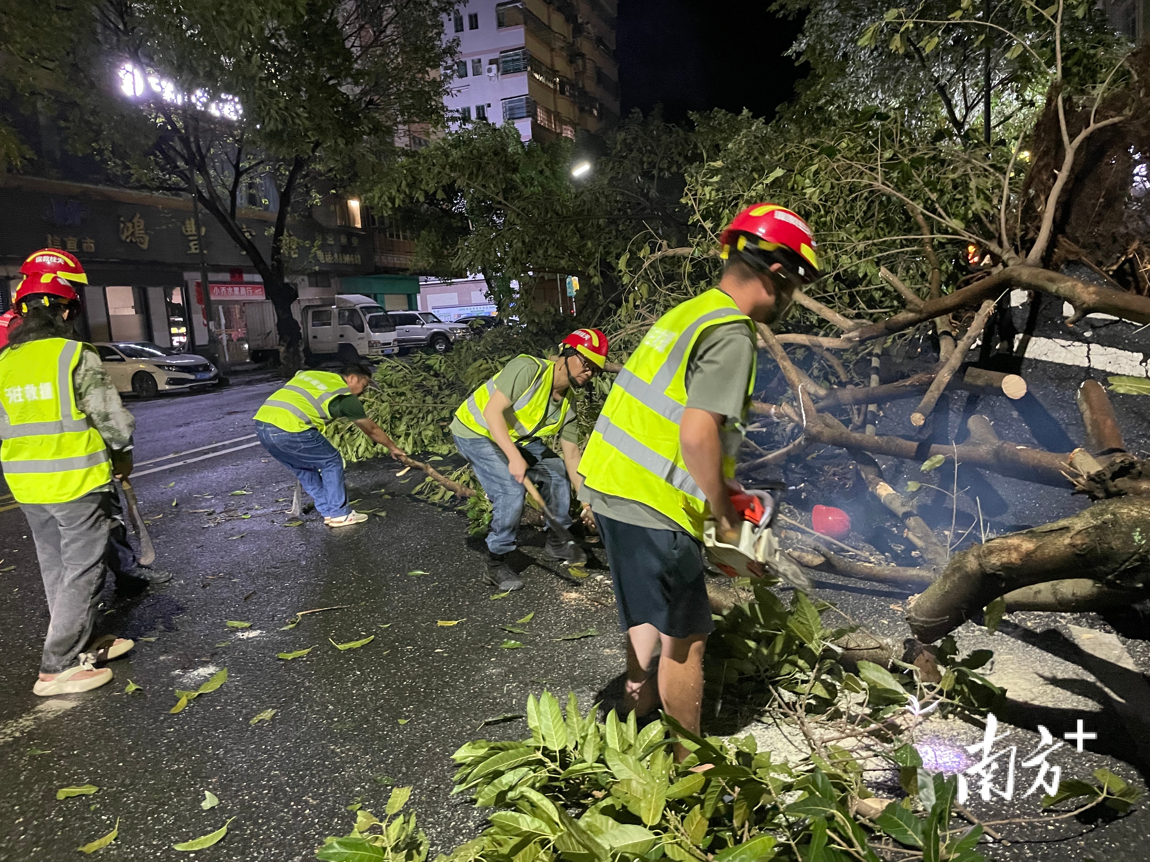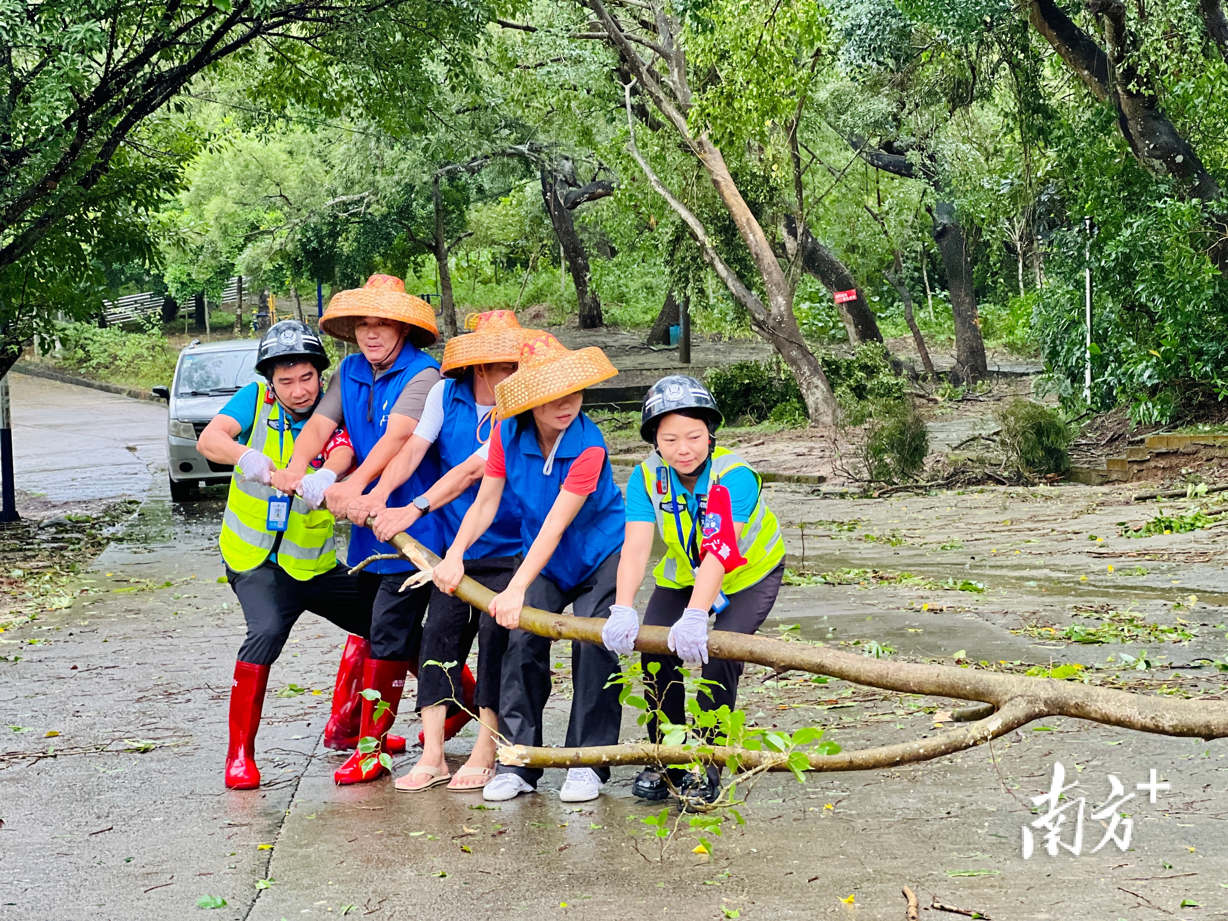 台风之后,茂名市滨海新区义工协助道路清障工作。