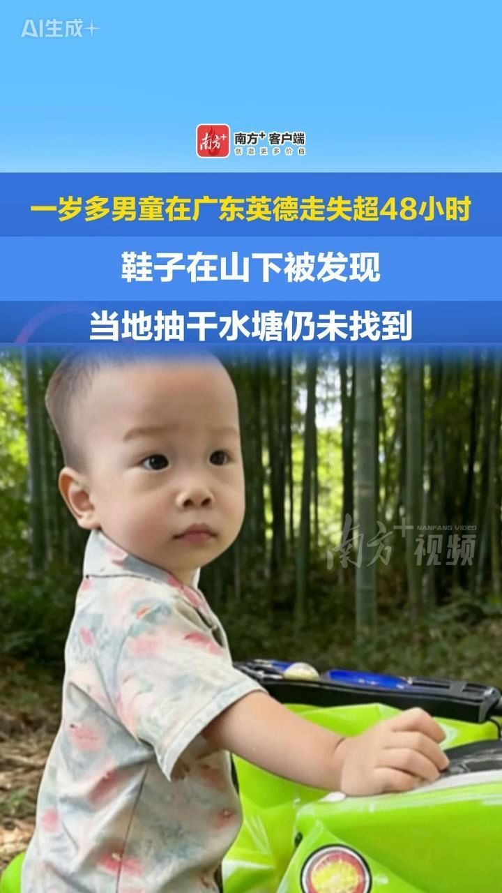 一岁多男童在广东英德走失超48小时,鞋子在山下被发现,当地抽干水塘仍未找到