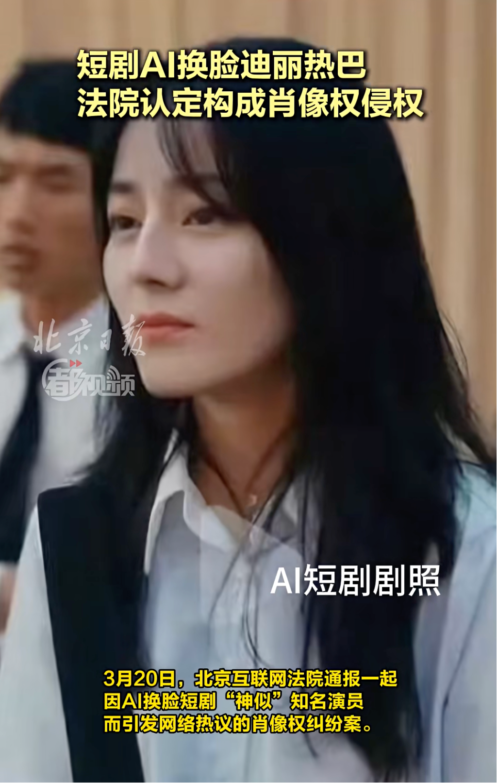 同日,演员迪丽热巴起诉某平台播出短剧利用AI换脸技术盗用其肖像牟利一事,也有了最新进展。