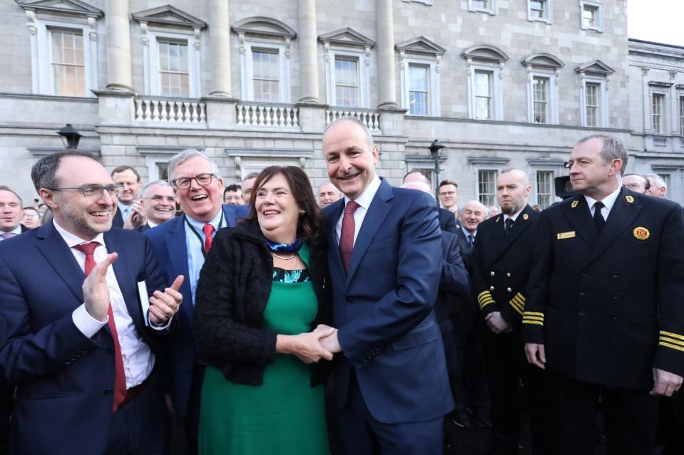 爱尔兰都柏林,米歇尔·马丁(中右)与妻子。新华社 发