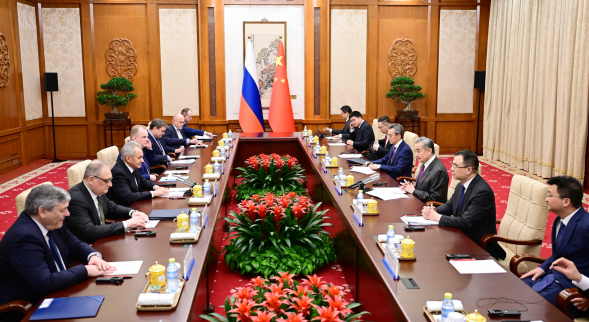 2026年2月1日,中共中央政治局委员、中央外办主任王毅在北京会见俄罗斯联邦安全会议秘书绍伊古。