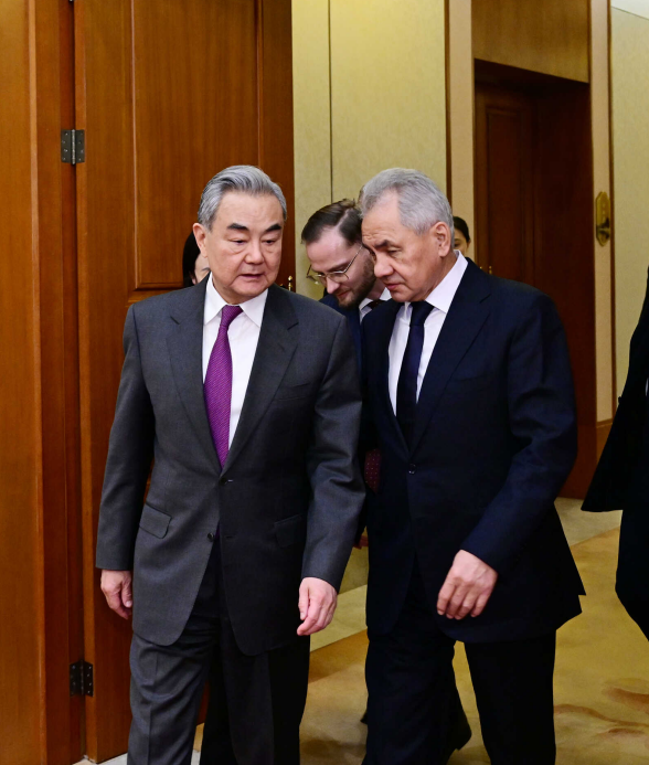 王毅欢迎绍伊古受普京总统委派来华战略沟通,表示当前世界更加变乱交织,二战后国际秩序和国际关系准则受到严重冲击,世界面临倒退回“丛林法则”的现实危险。中俄作为世界大国和联合国安理会常任理事国,有责任有义务践行真正的多边主义,维护以联合国为核心的国际体系,倡导平等有序的世界多极化、普惠包容的经济全球化,推动构建更加公正合理的全球治理体系。