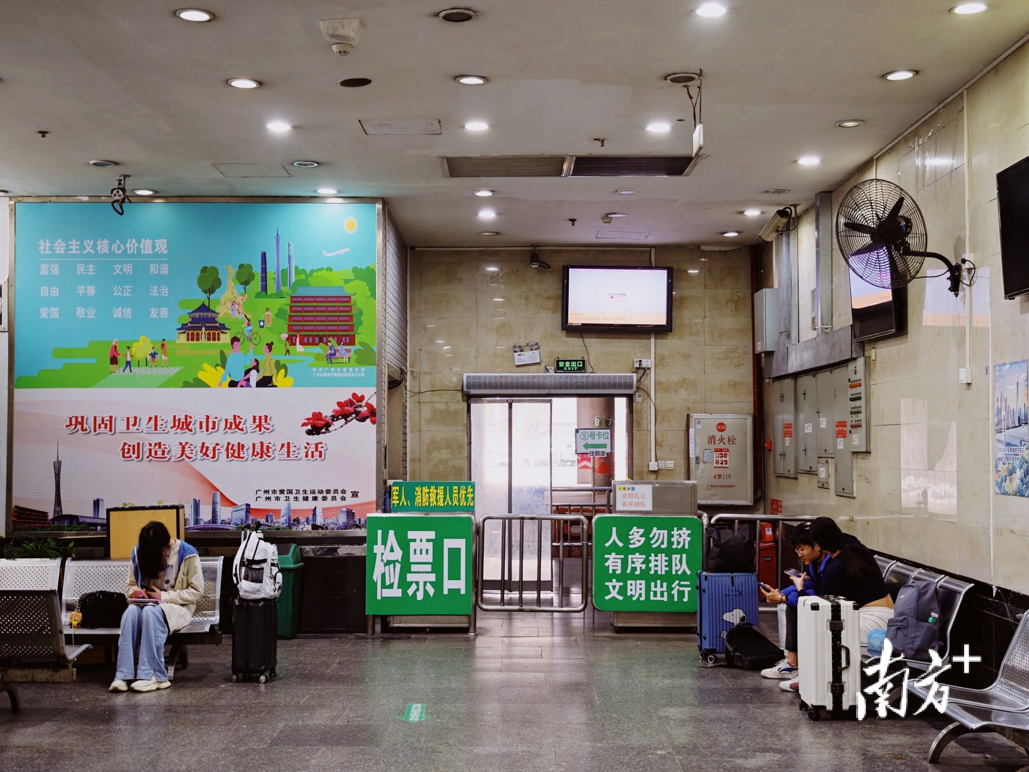 走进广园客运站,虽然离正式关停只剩不到一周,但站内依然有不少旅客拖着行李在窗口购票。候车大厅的座椅上,等待发车的旅客或闭目养神,或低头看着手机。站外,“广园客运站”几个大字在冬日的阳光下略显斑驳。