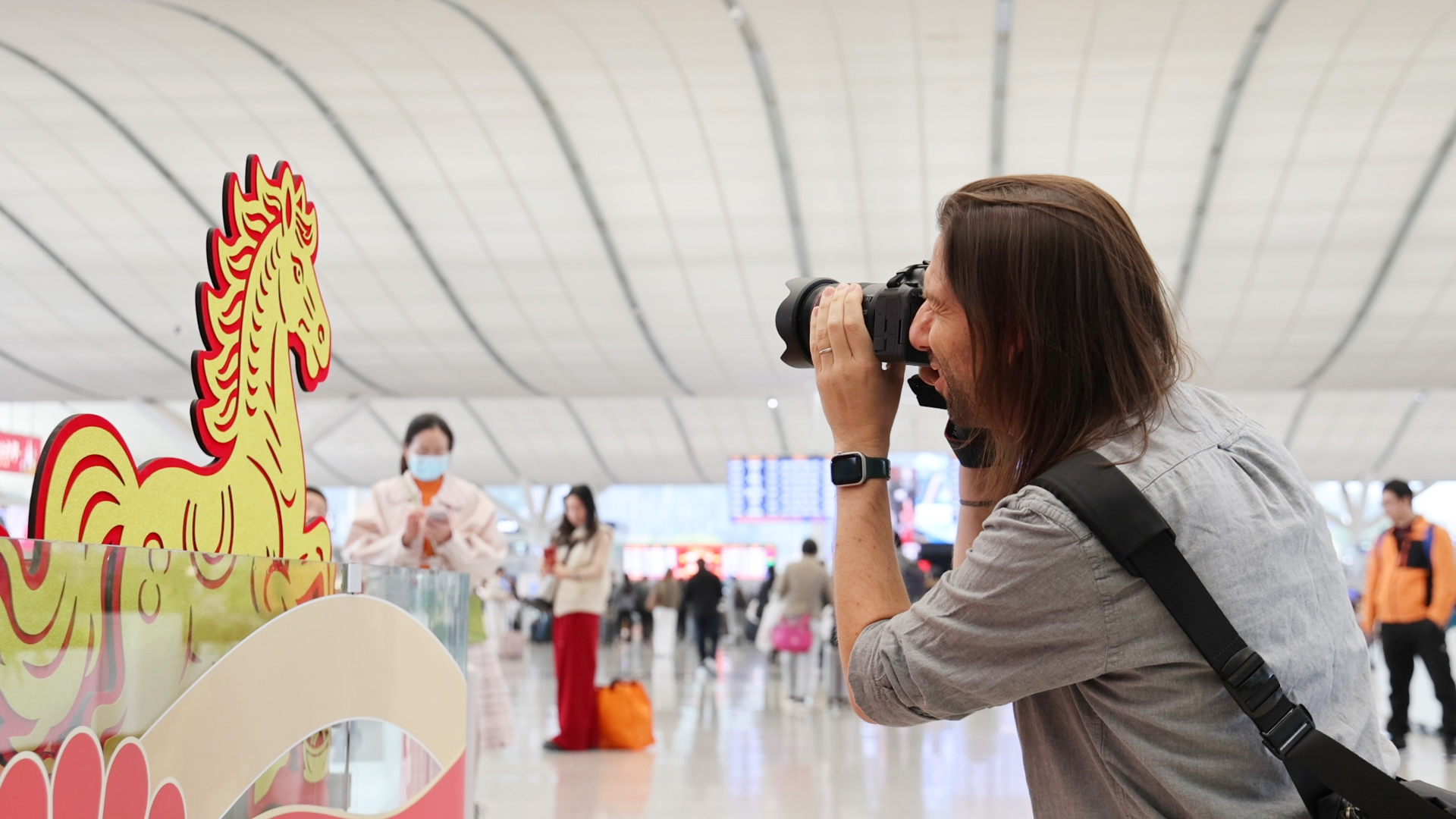在深圳北站,来自美国的纪录片导演Craig正举着相机,捕捉春运里的烟火气与温情瞬间。定居深圳多年的他,常将铁路与春运作为拍摄选题。