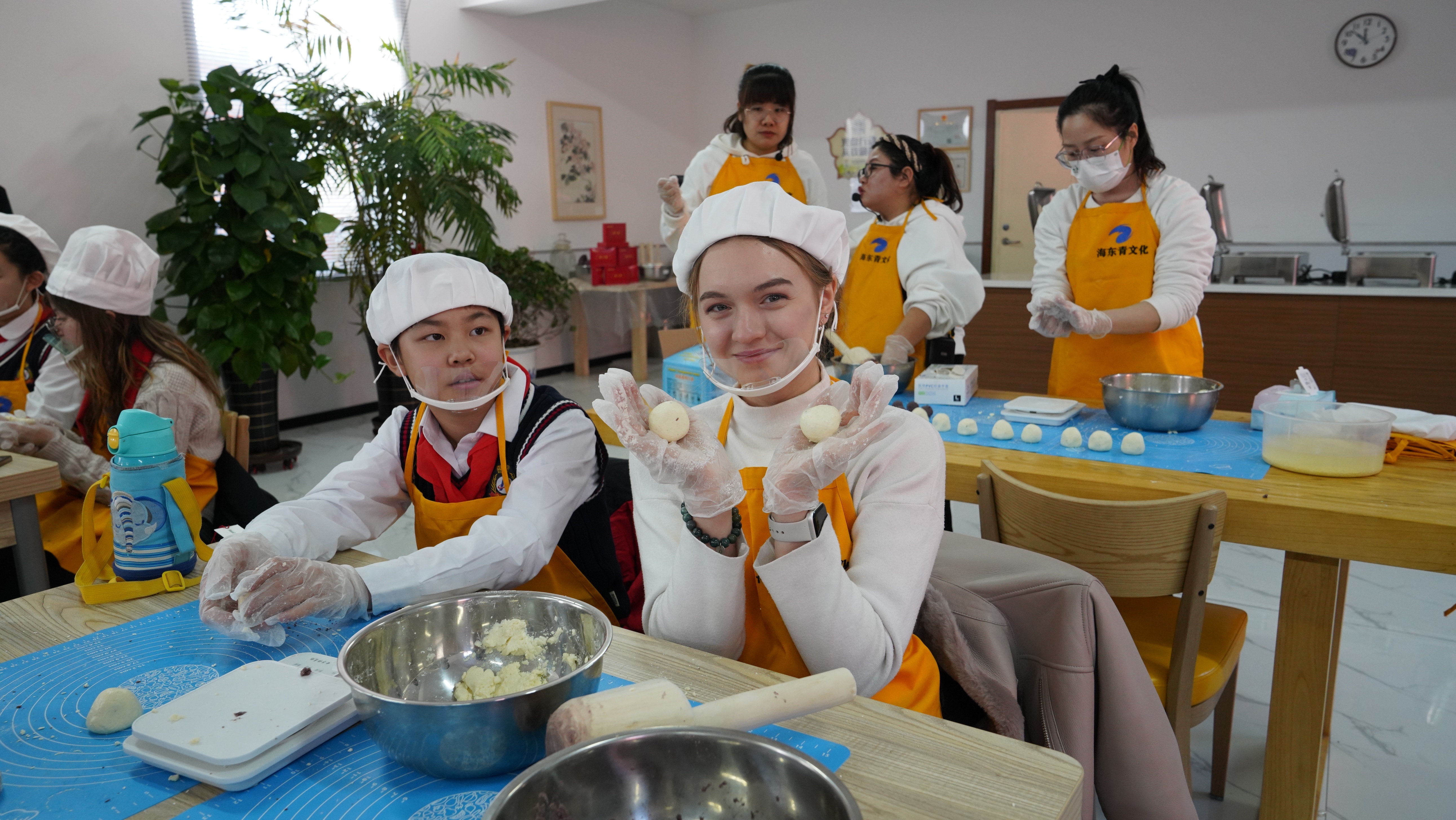 一位俄罗斯学生在牡丹江海东青文化创意园研学课堂体验中国传统美食技艺(图片由黑龙江省文旅厅提供)