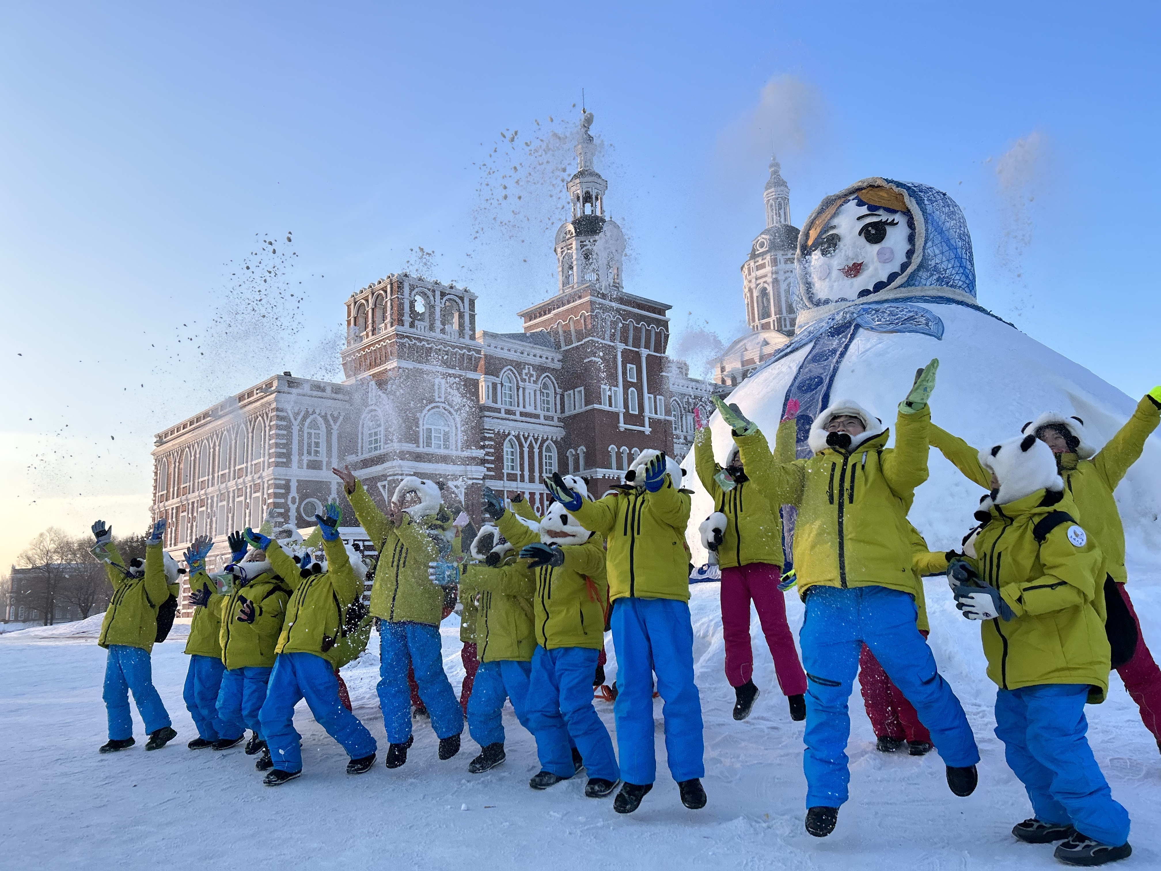 来自四川的研学团队在哈尔滨伏尔加庄园扬雪嬉戏