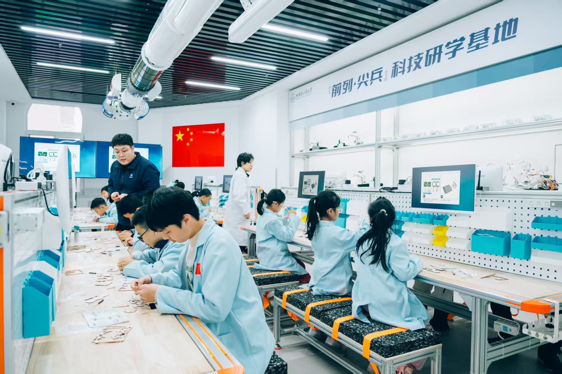 来自全国各地的研学小队员们在哈工大“前列·尖兵”科技研学基地实践课堂上动手实操,探寻科学奥秘