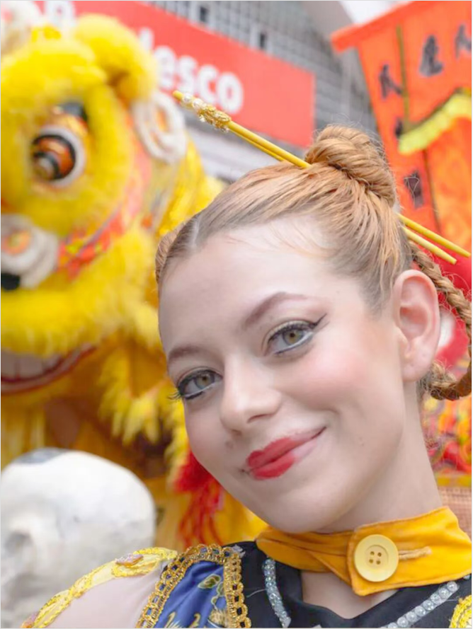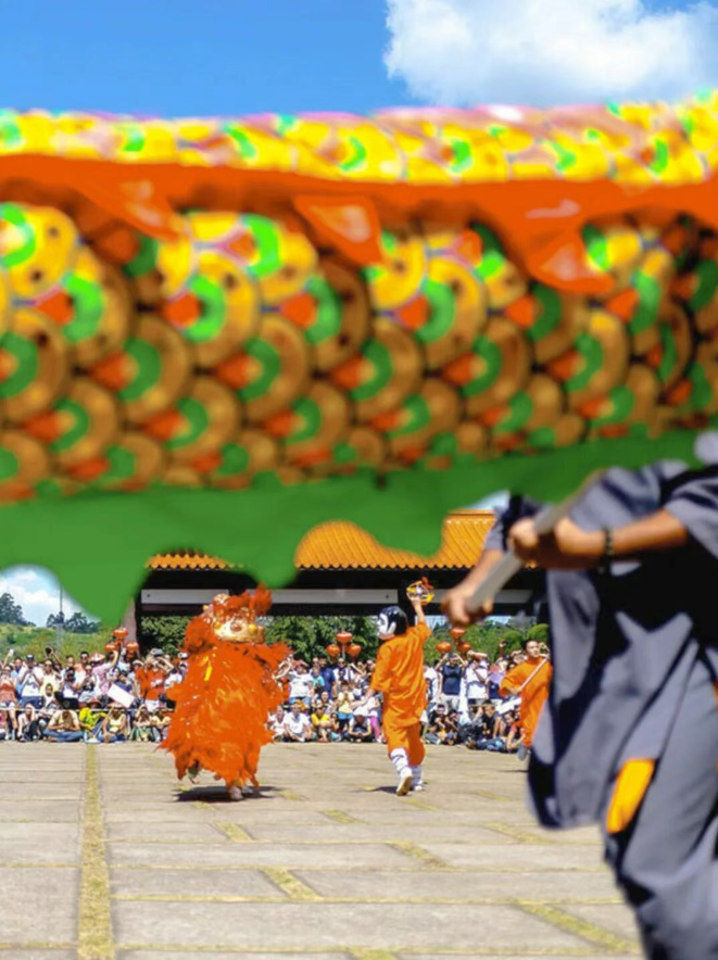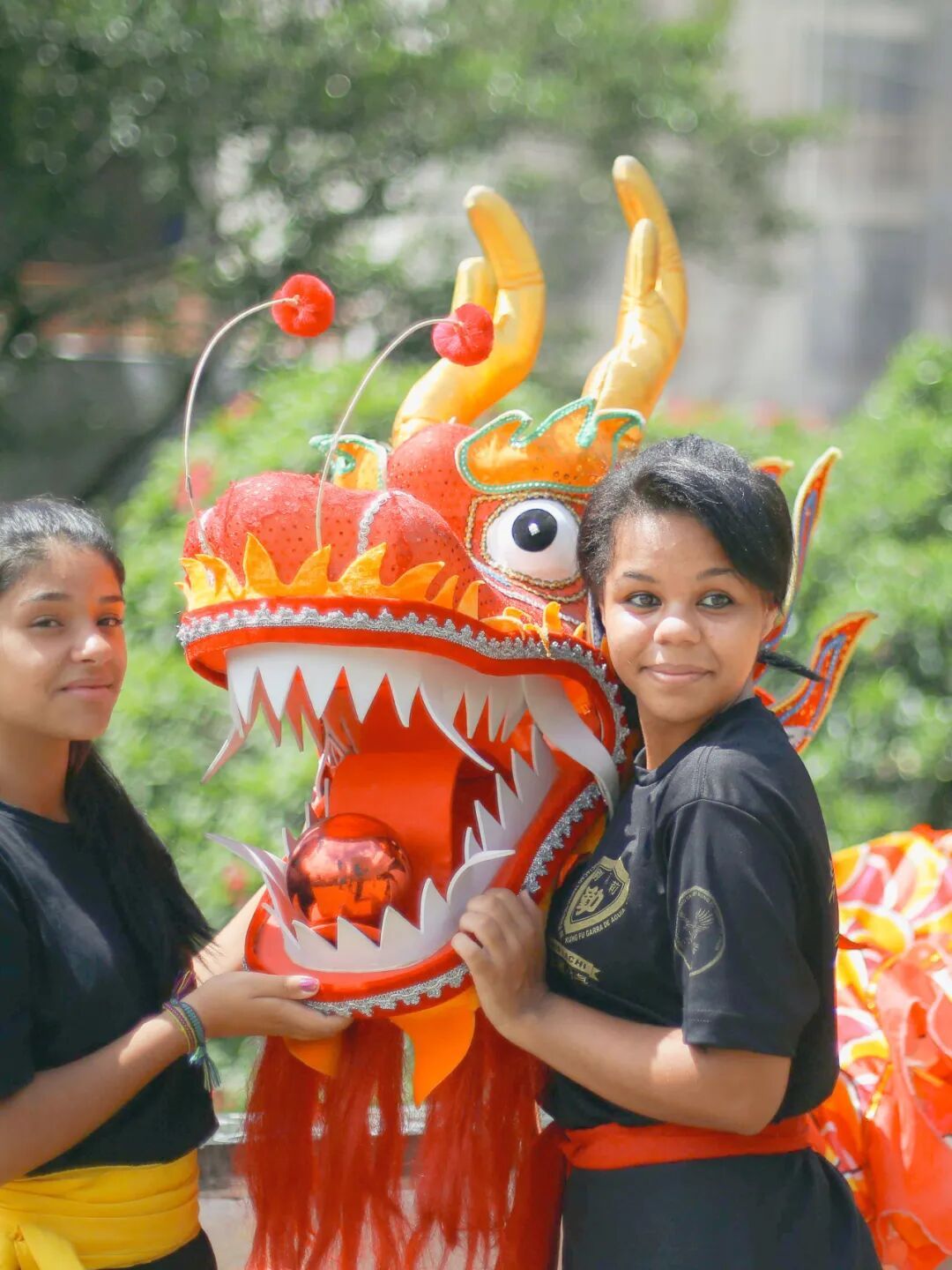 巴西舞龙女孩与龙头合影(图:壹图网)