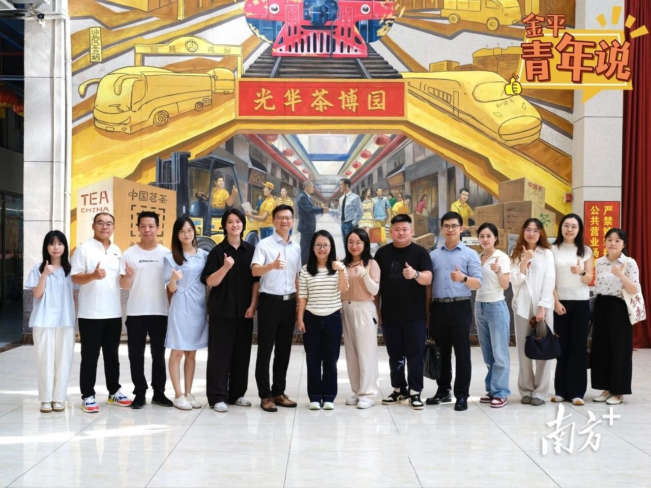 彭志浩(左六)参加“金平青年说” 系列活动,推动各行业青年在交流中互促互鉴、共同提升。 受访者 供图