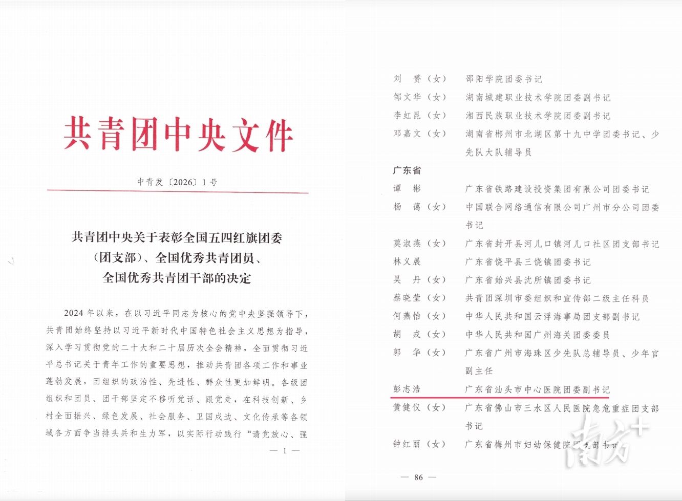 近日,共青团中央发布全国“两红两优”表彰名单,对2024年以来在全国各领域表现突出的团组织和个人予以表彰,彭志浩成为汕头3名获授表彰的个人之一,也是此次汕头唯一获此殊荣的“全国优秀共青团干部”。十二年来,他不仅持续组织这样的生命接力,更将医院的青年工作和志愿服务打造成了一张有温度的名片。
