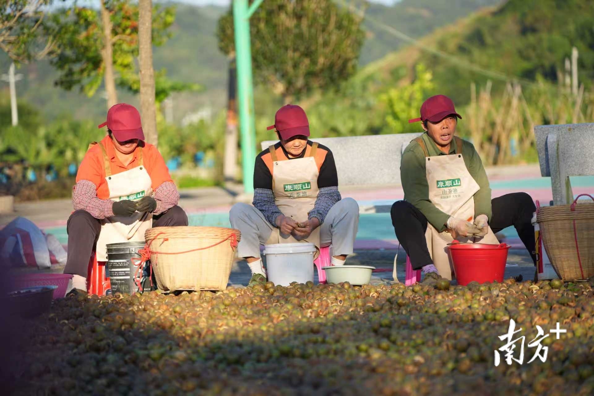 在平台镇康顺村顺路种养专业合作社加工基地,工人们正熟练剥取油茶籽。该基地通过实施测土配方施肥、病虫害绿色防控等技术,基地化肥农药使用量减少30%,土壤有机质含量提升15%。同时,创新采用的“鸡粪发酵肥+生物防治”生态种植模式,使茶籽油酸价、过氧化值等多项指标经SGS检测均优于国家标准,成就“深山液体黄金”的美誉。