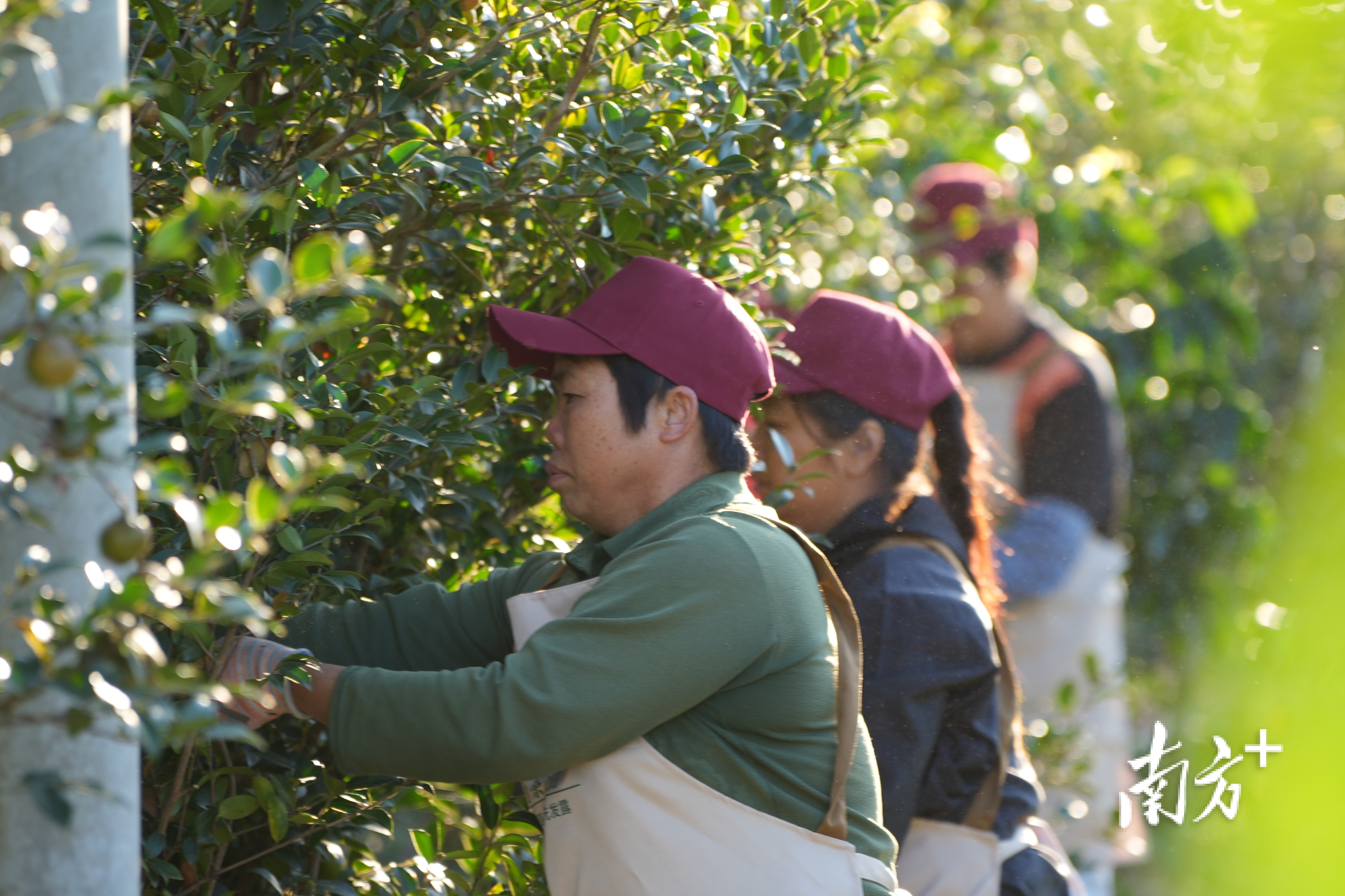 村民在采摘油茶。杨畅升 摄