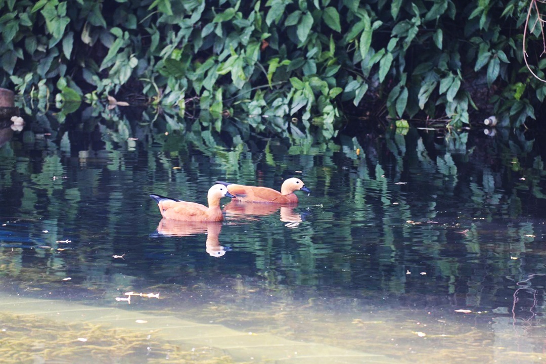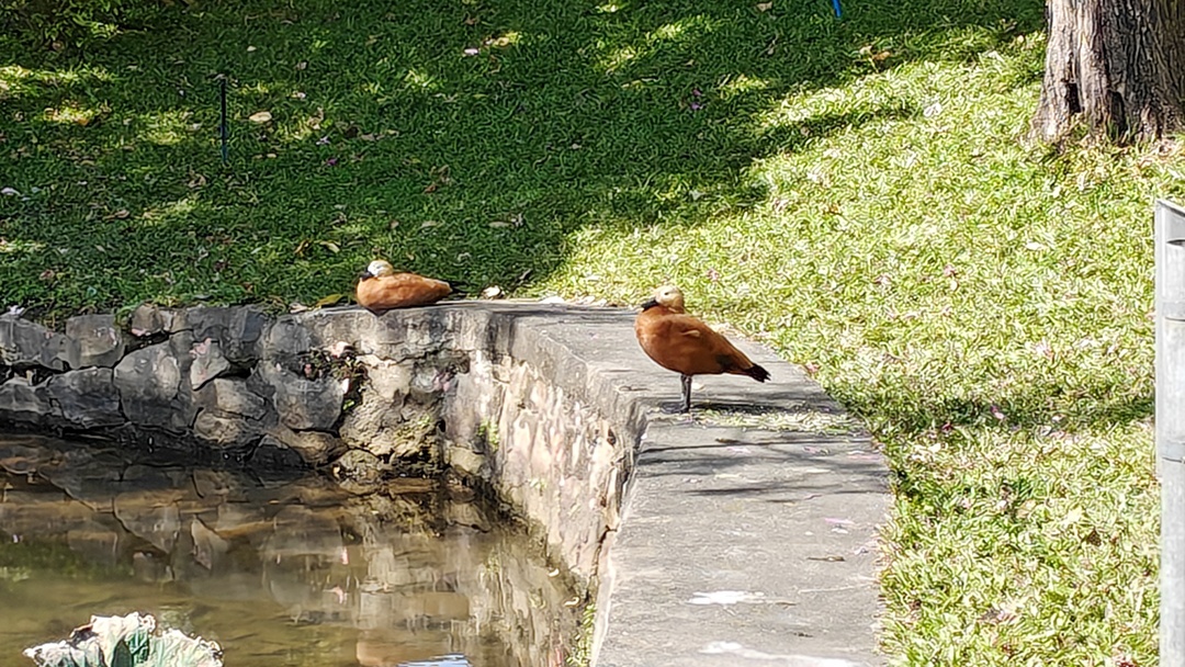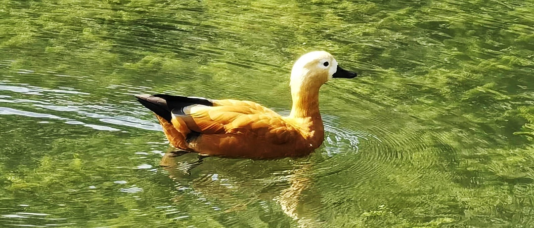 赤麻鸭,是雁形目鸭科麻鸭属的鸟类,整体羽毛颜色亮丽,全身橙黄色,略带棕色,头和颈羽色浅,呈淡黄色或带灰色;翼和尾黑色,翼上覆羽白色;眼棕色,嘴端黑色;腿和脚红色,爪黑色;雄性生殖季节有黑色的颈环,雌性缺乏黑色颈环,头部灰色或呈白色。
