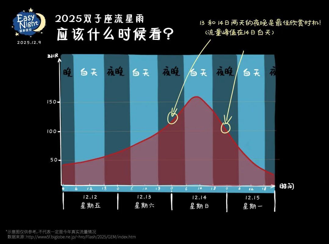 2025双子座流星雨什么时候看?看图上黄字|EasyNight