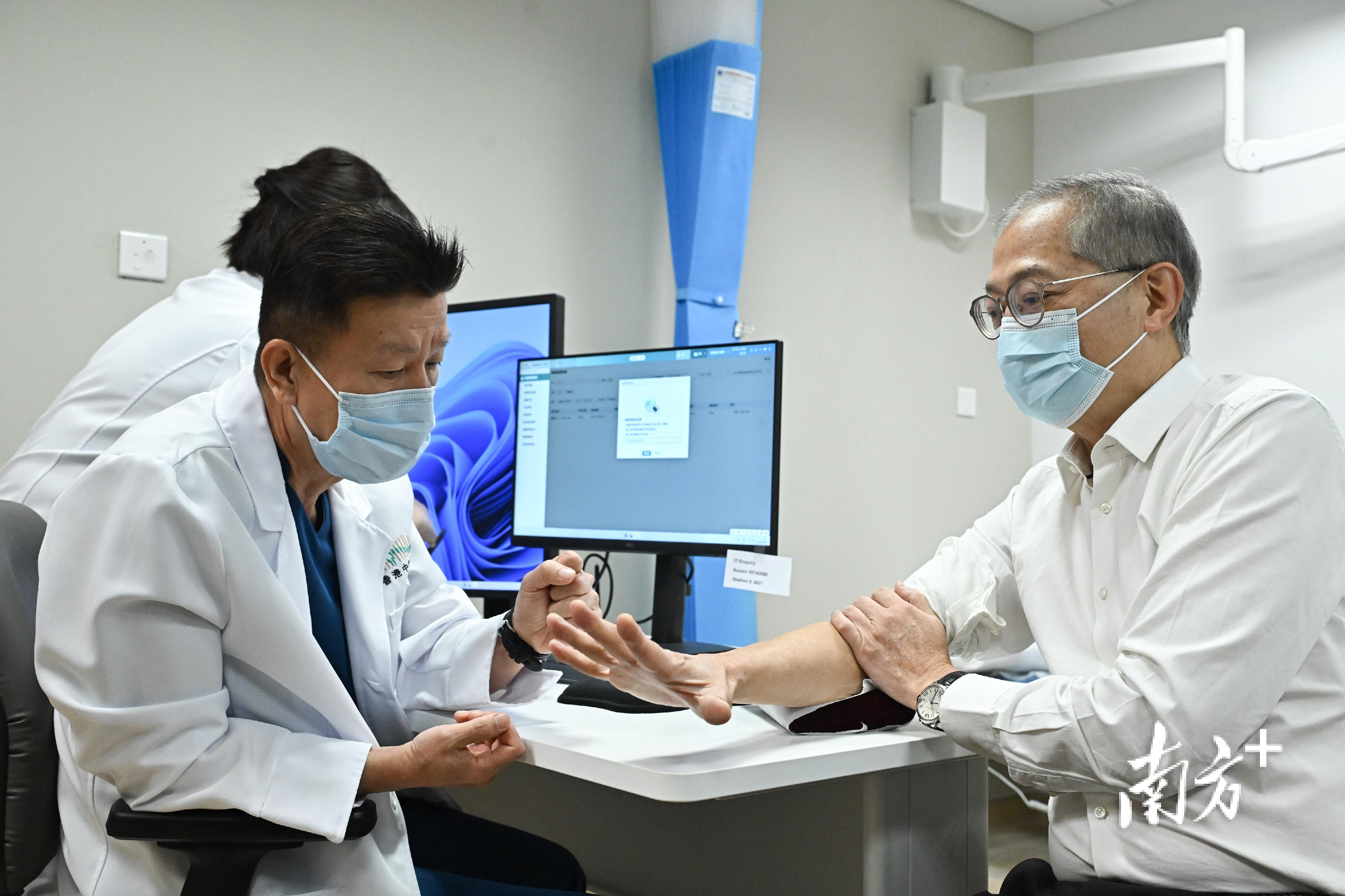 香港特区政府医务卫生局局长卢宠茂(右)在医院体验诊疗服务。